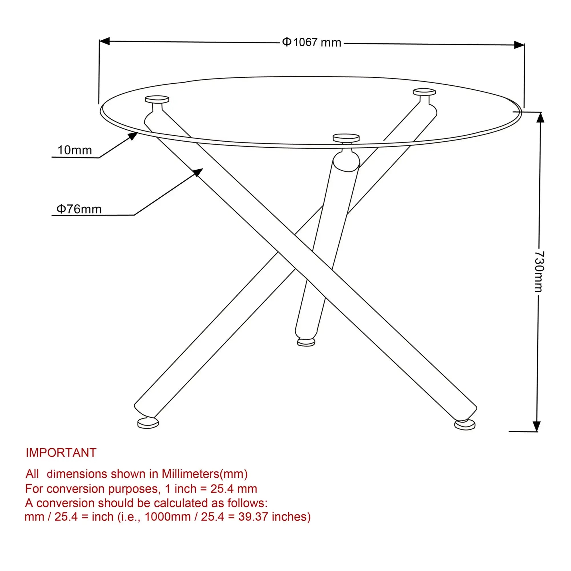 • Elegant 10mm clear tempered glass tabletop for a modern, open feel