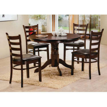 Dining room set with a round dark wood table and four matching chairs Dining room set with a round dark wood table and four matching chairs