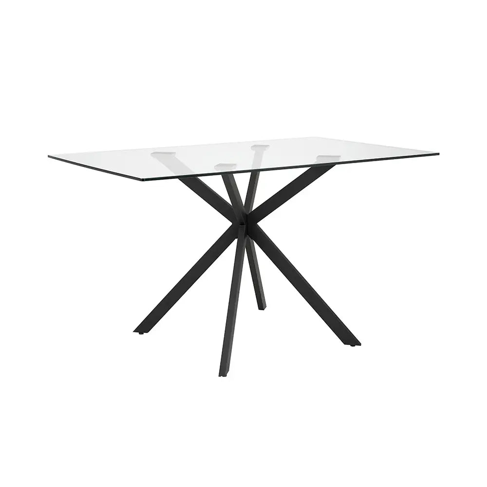 Lincoln Rectangular Glass Dining Table with Black Metal Frame