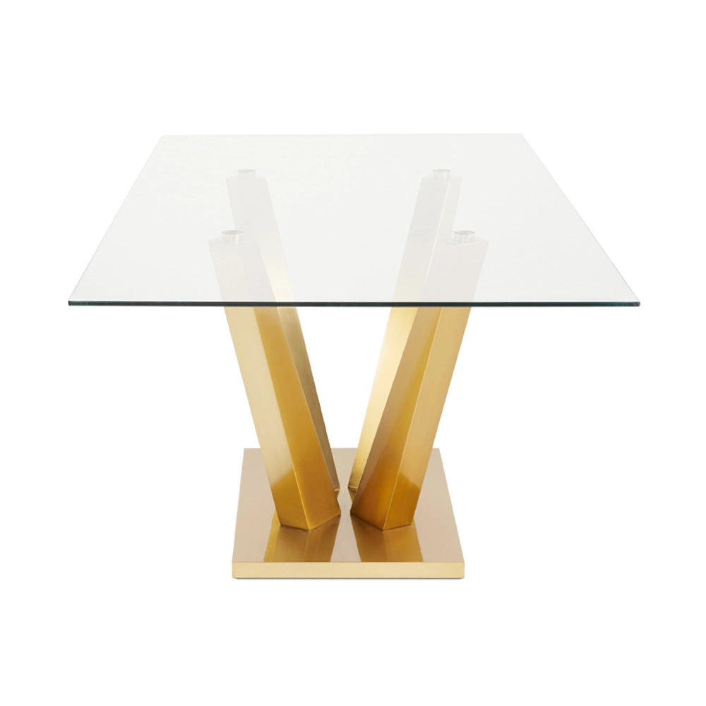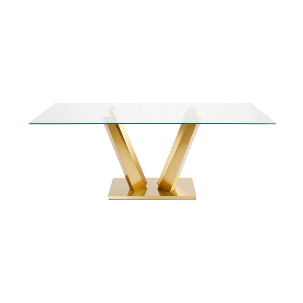 Paolo Modern Glass Top Dining Room Table with Brushed Gold Steel Base