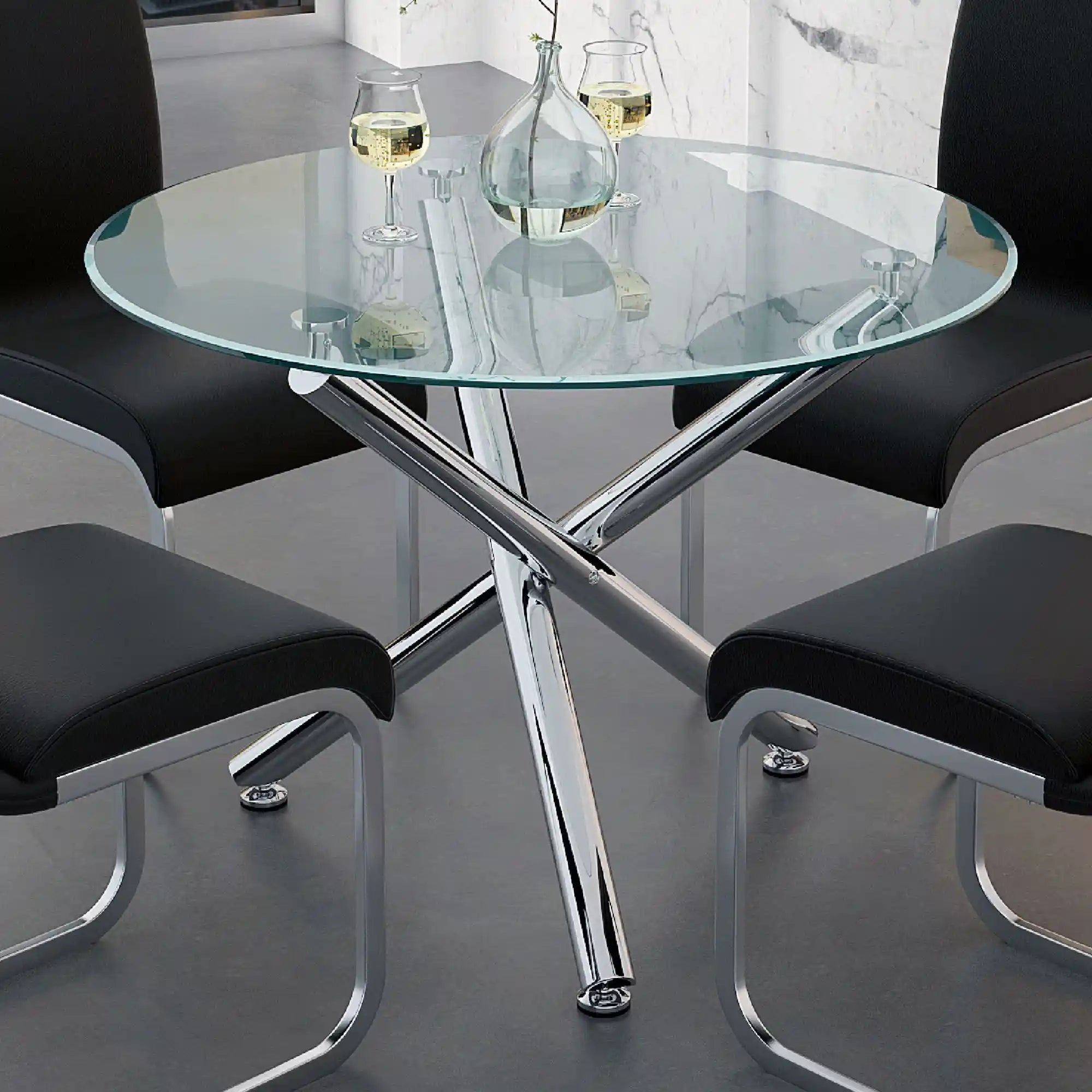 Solara II 40 Glass Round Dining Table with Chrome Legs