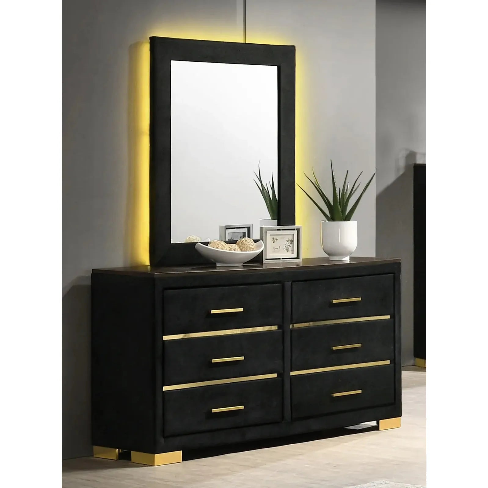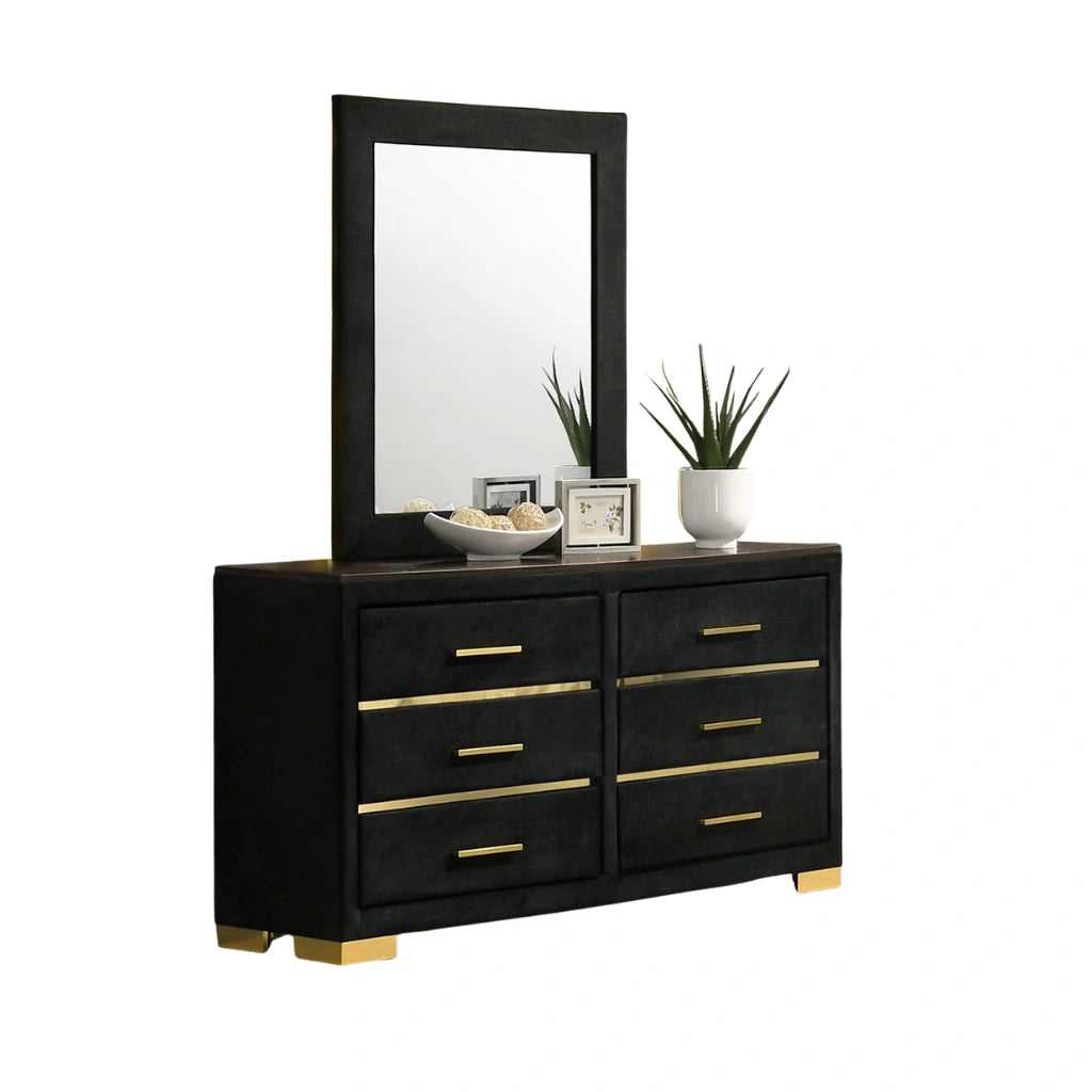6-Drawer Luxury Dresser with Mirror - Black Velvet
