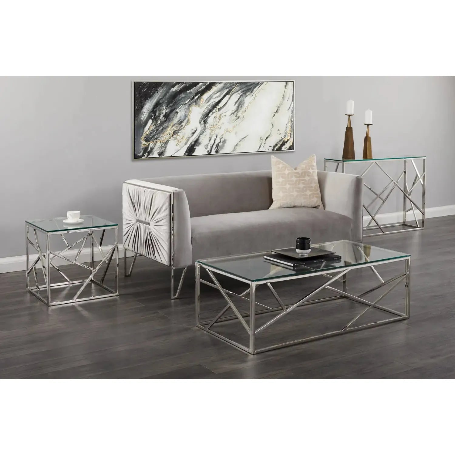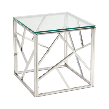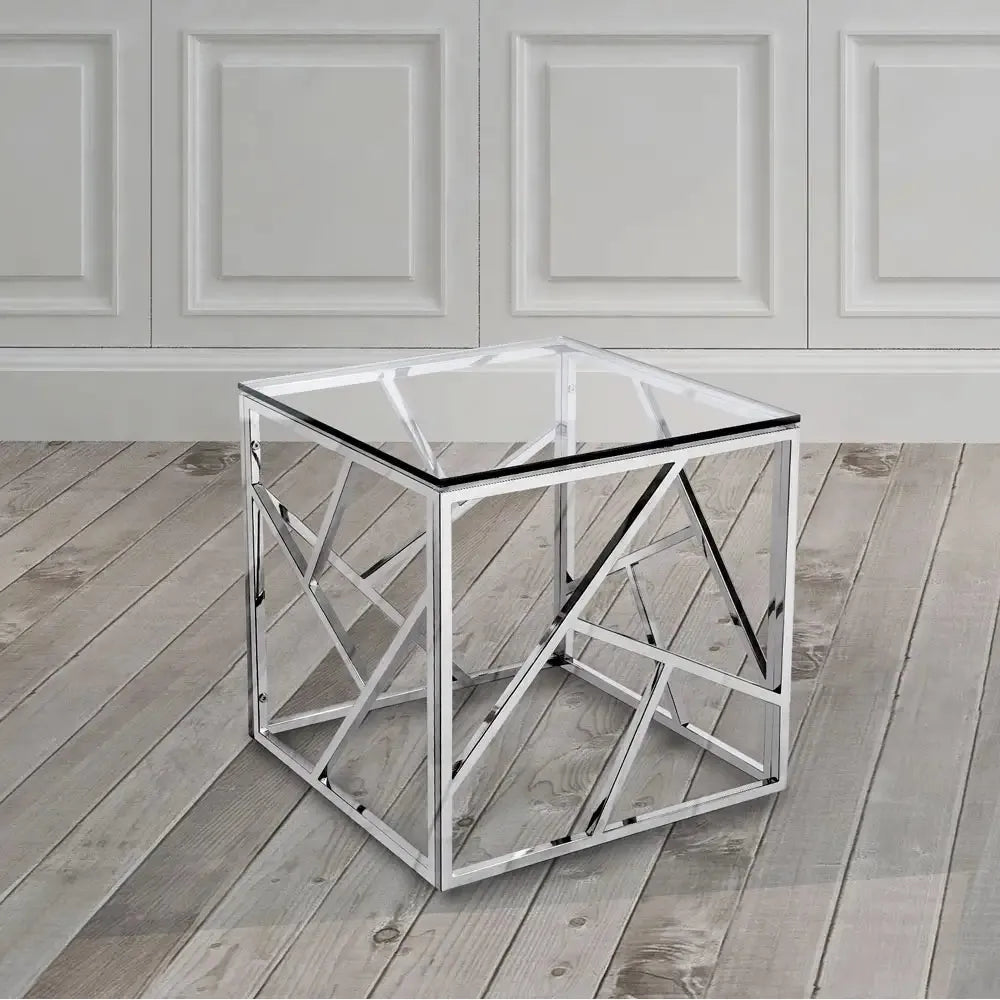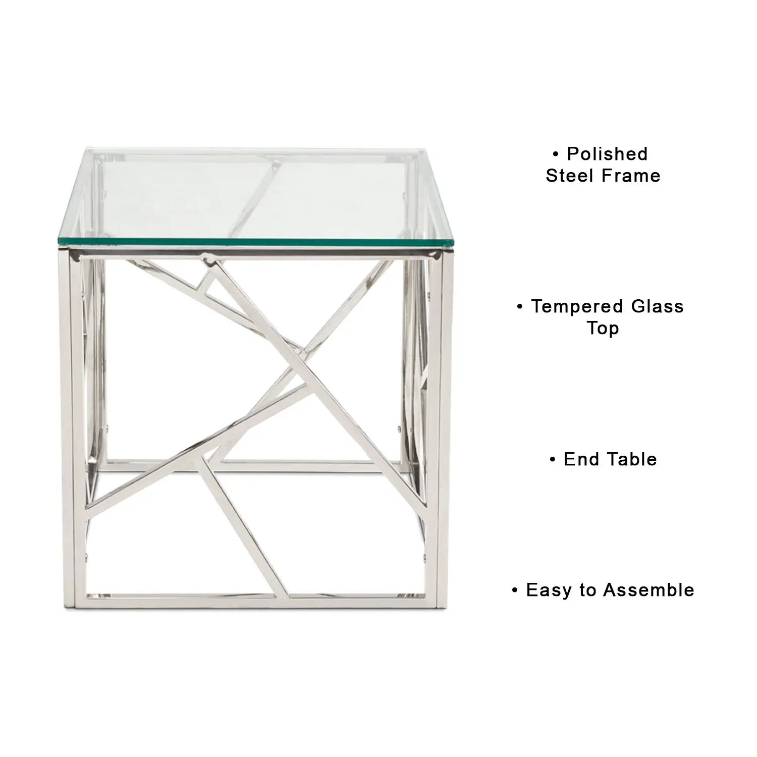 Carole Glass End Table for Living Room – Polished Steel & Modern Style