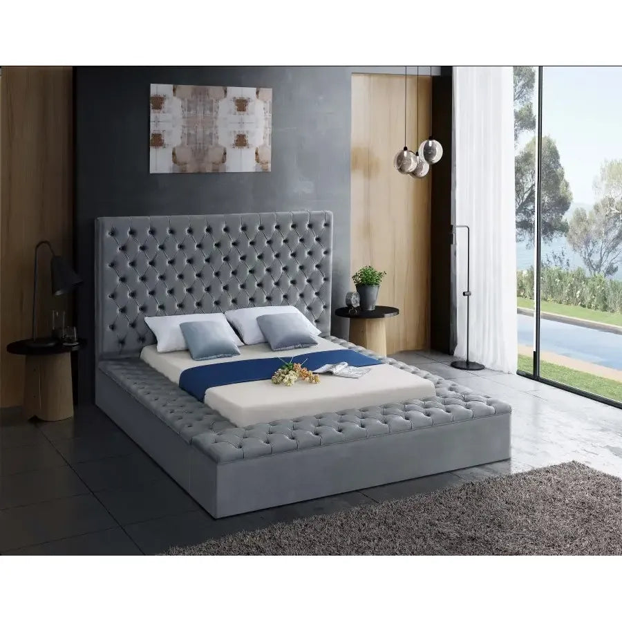 Grey Velvet King Storage Bed with Tufted Headboard Grey Velvet King Storage Bed with Tufted Headboard