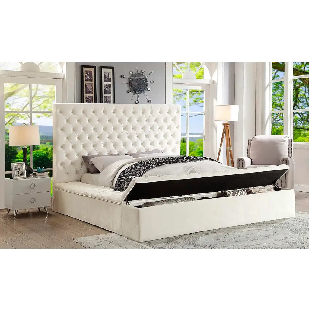 Velvet King Storage Bed with Tufted Headboard & Mattress Support