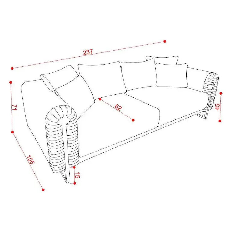 - Sofa: W:93.31" x D:27.95" x H:41.34"