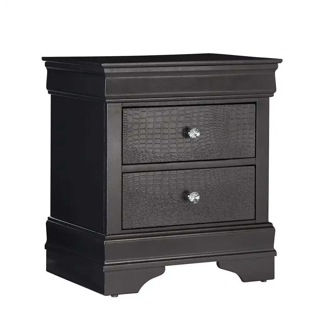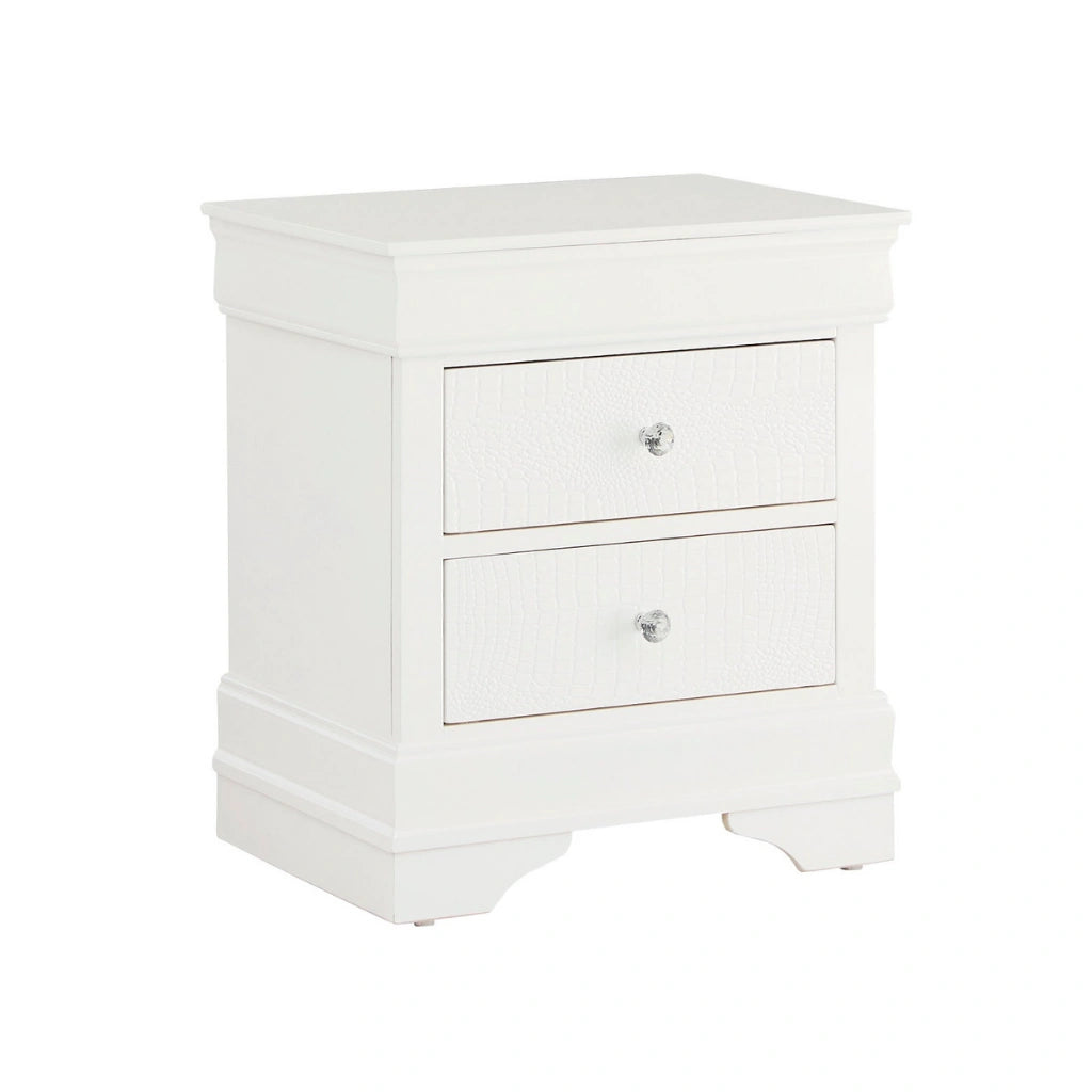 Elevate your bedroom style with this stunning nightstand with drawers. The metallic grey or white finish pairs beautifully with elegant crocodile veneer fronts, adding a touch of luxury.