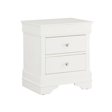 Crystal hardware reflects light delicately, giving your bedroom a subtle sparkle. At 21"L x 16"W x 24"H, it’s compact but spacious enough to hold everything you need within arm’s reach.