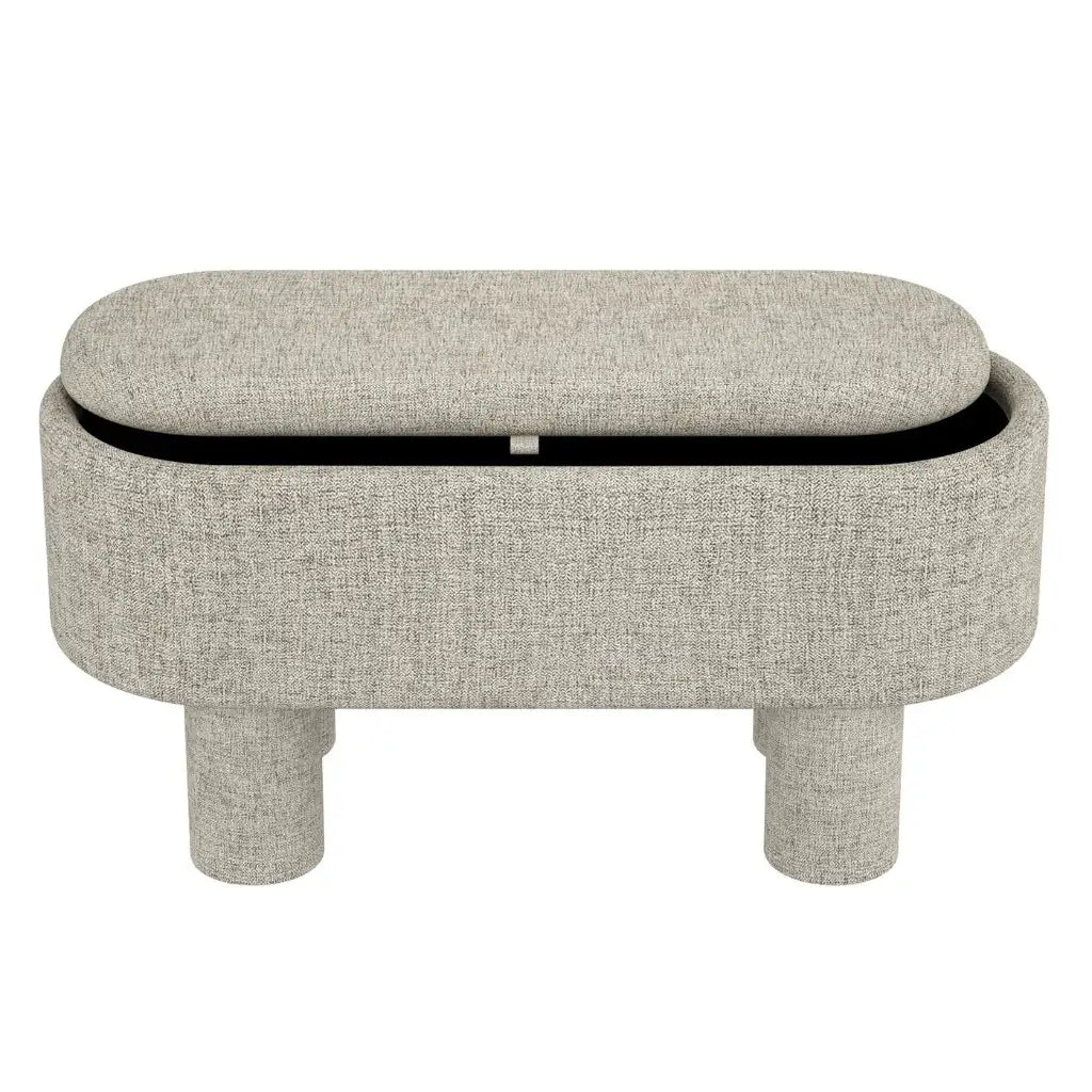 Declutter your house in style with the Sezron storage ottoman bench. Upholstered in a premium, high-end linen-look fabric with a sophisticated heathered finish, this contemporary oval bench is more than just good looks. The big interior space for storing pillows, toys, books, clothes, or blankets keeps the living room neat. Lift-off lid for easy and secure access; sleek and streamlined design. Whether styled at the foot of your bed, in your entryway, or nestled below your living room windows, the Sezron offers the perfect blend of form, function and beauty.