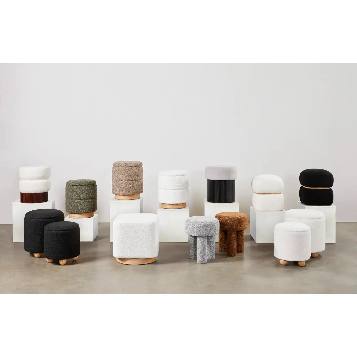 Bring a touch of luxury and warmth to your space with the Peter white shearling ottoman, enveloped in sumptuous white shearling upholstery and finished with a natural oak mid-plate. Whether you need a conversation piece, a plush footrest, or a designer seat, this contemporary shearling ottoman is a small item that makes a big difference.