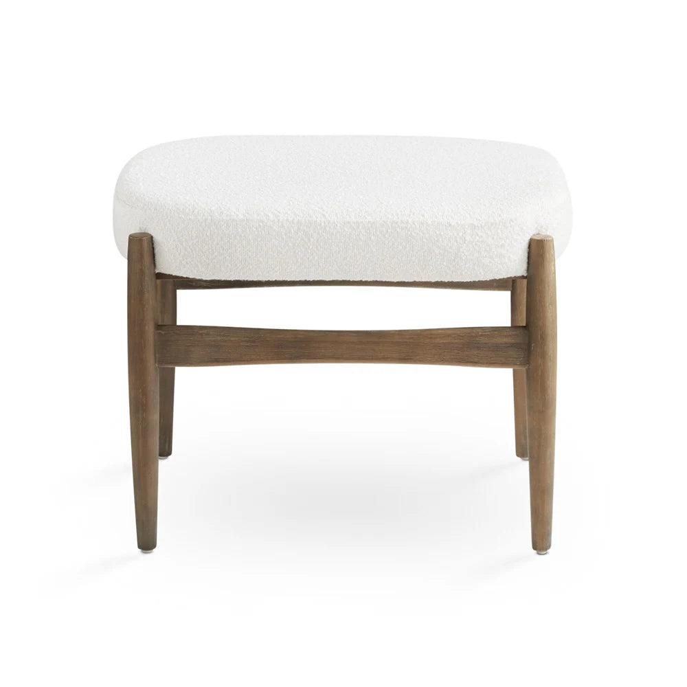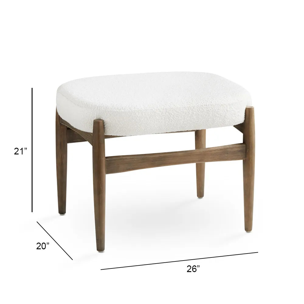 Salina White Boucle Fabric Ottoman – Solid Wood Legs for Living Room