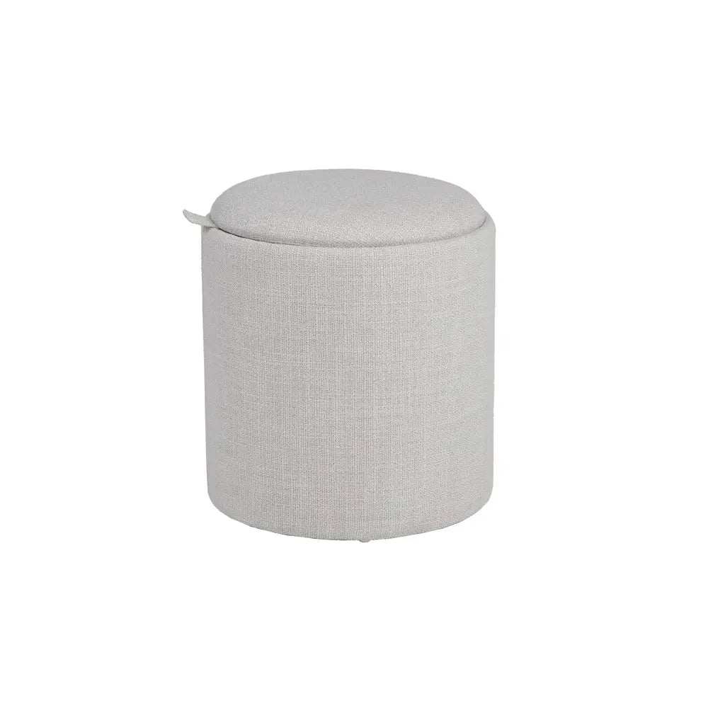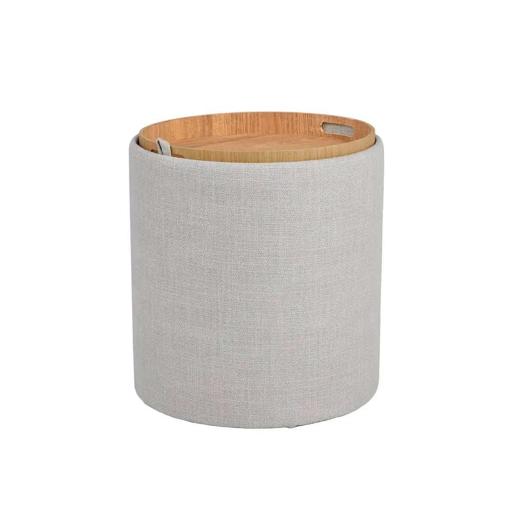 Set of 2 Round Ottomans with Tray – Light Grey Linen Storage Stools