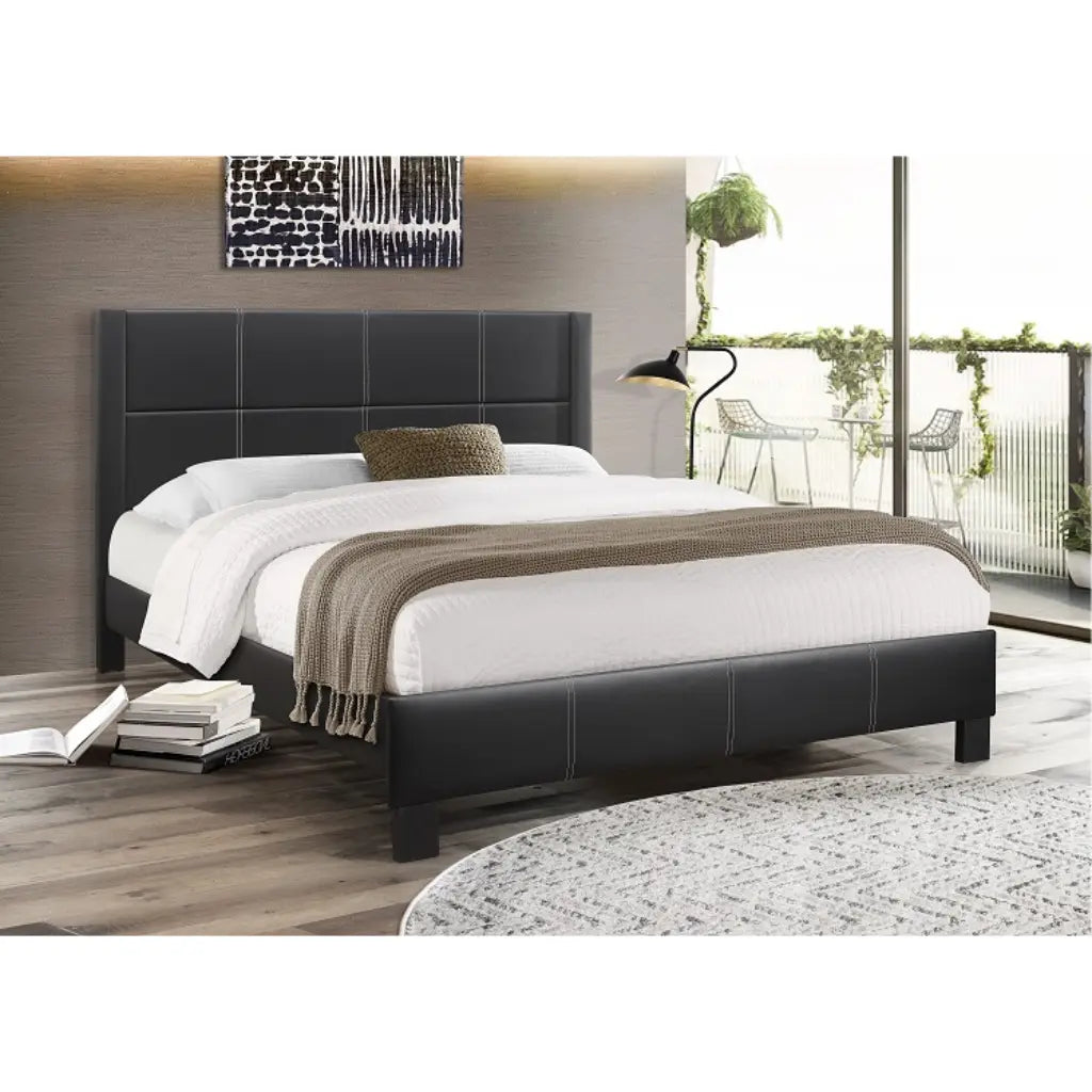 Modern PU Queen Bed with Mattress Support & Contrast Stitching