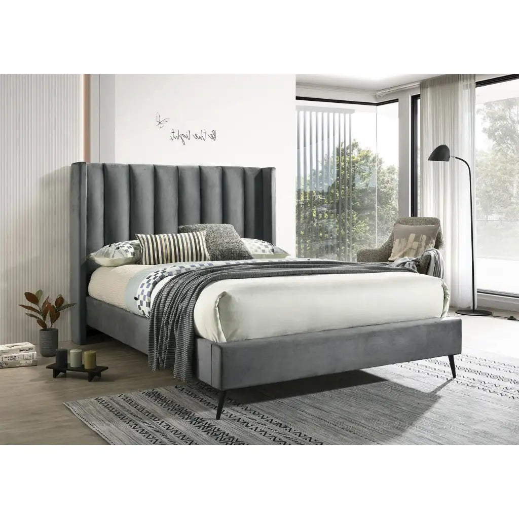 Queen Bed with Tufted Wingback Headboard in Black Velvet