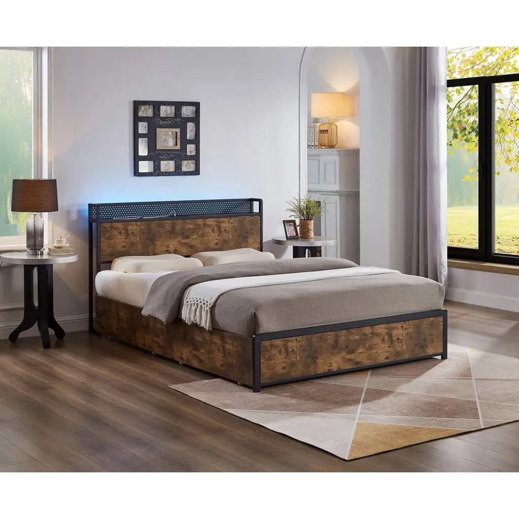 Queen Platform Bed with Storage, LED Lights & Charging Ports