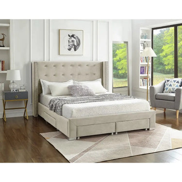 Beige Velvet Queen Storage Bed with Drawers Beige Velvet Queen Storage Bed with Drawers