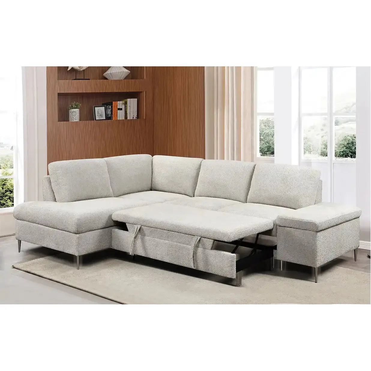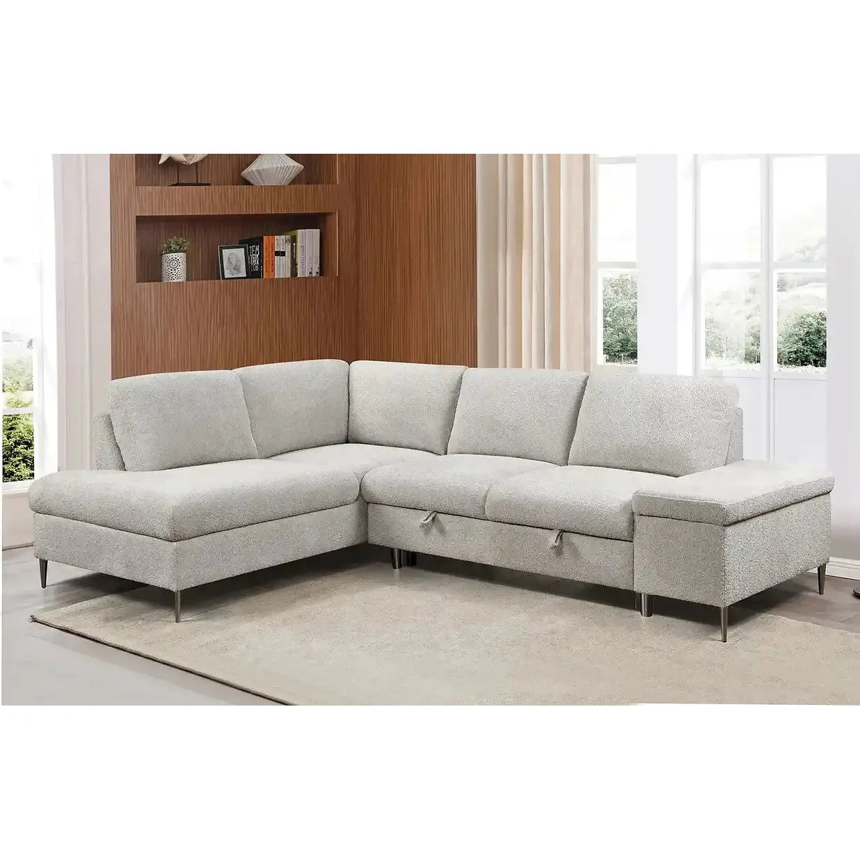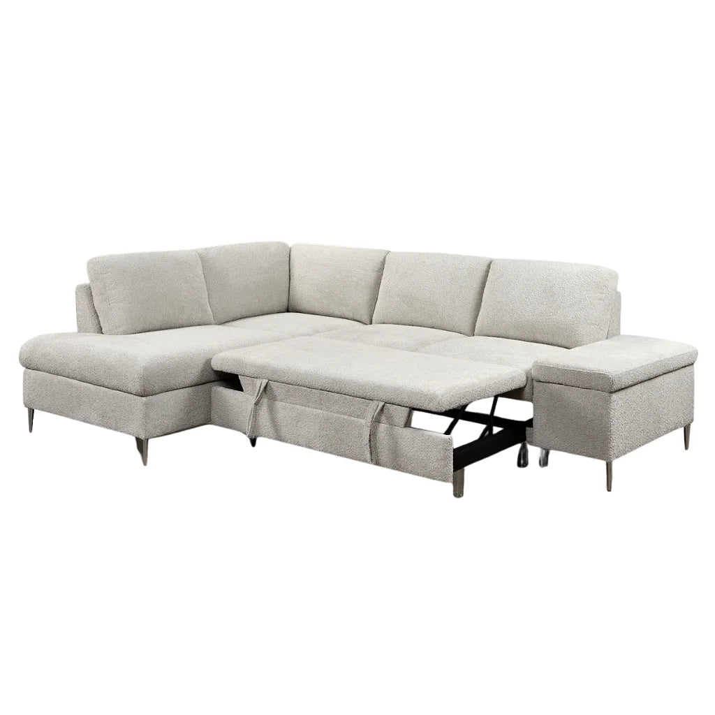 Left-Facing Sectional Sofa Bed with Lift-Up Storage - Boucle Fabric
