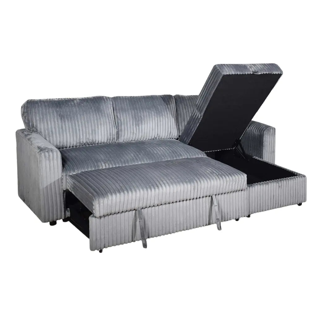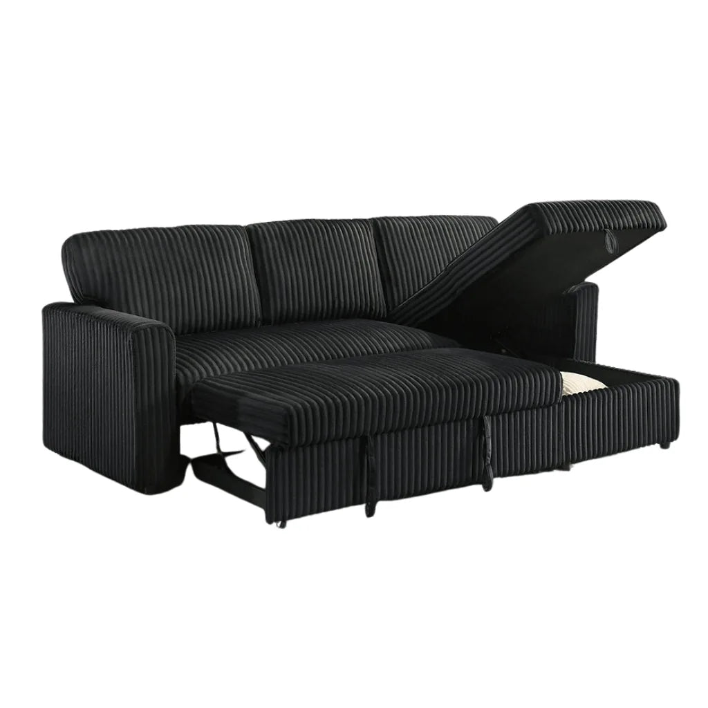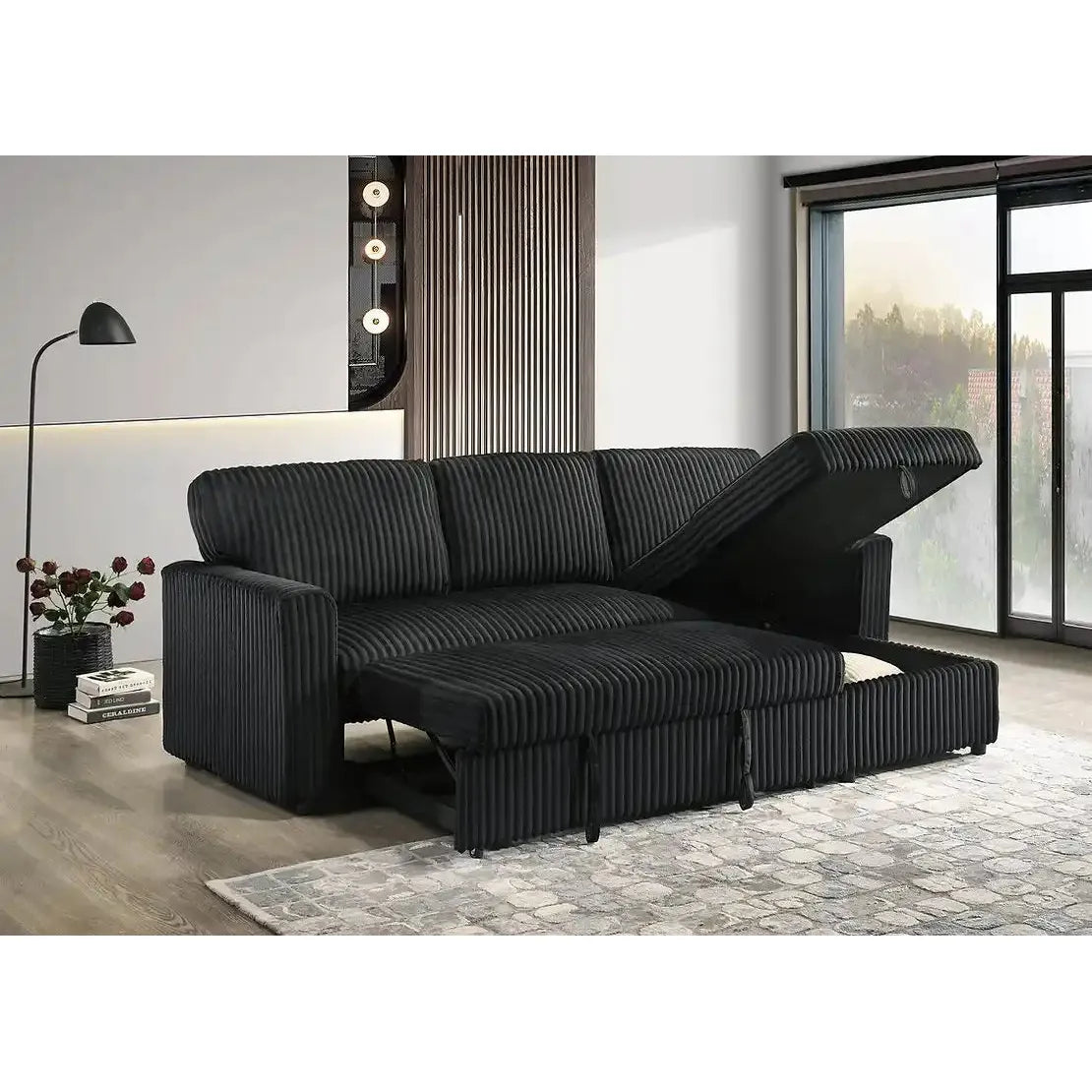 Reversible Sectional Sofa Bed with Storage – Soft Black Corduroy
