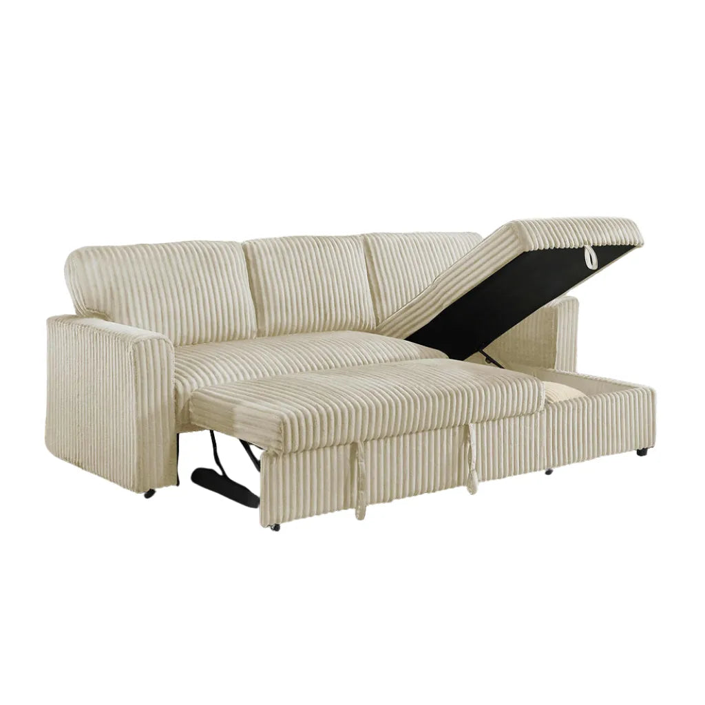 The clever reversible chaise can be positioned left or right to fit your layout perfectly. Inside, a generous lift-up storage bench swallows blankets, pillows, or clutter in seconds, keeping your living space tidy and chic.