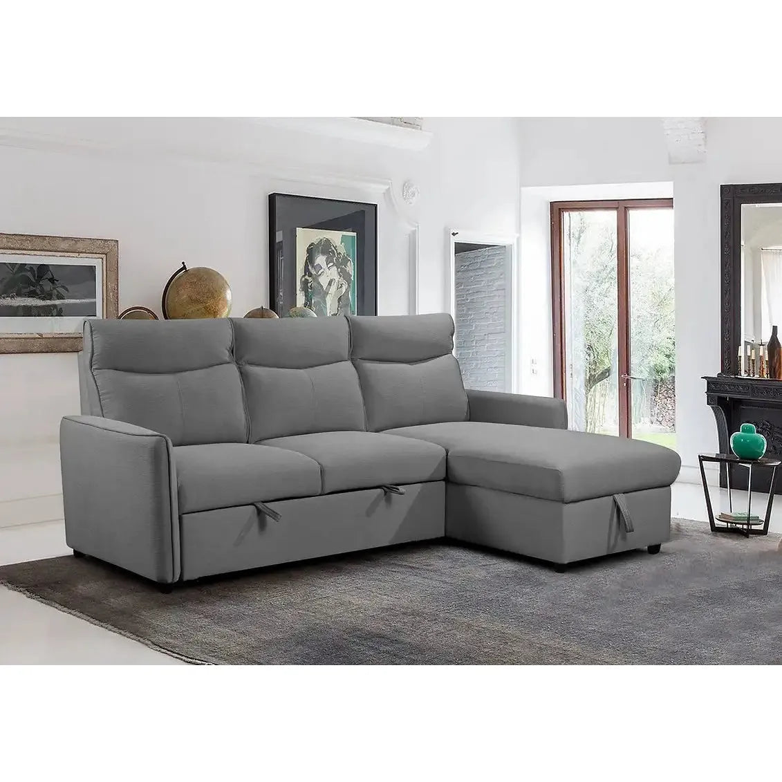 Reversible Sectional Sofa Bed with Storage – Soft Grey Fabric