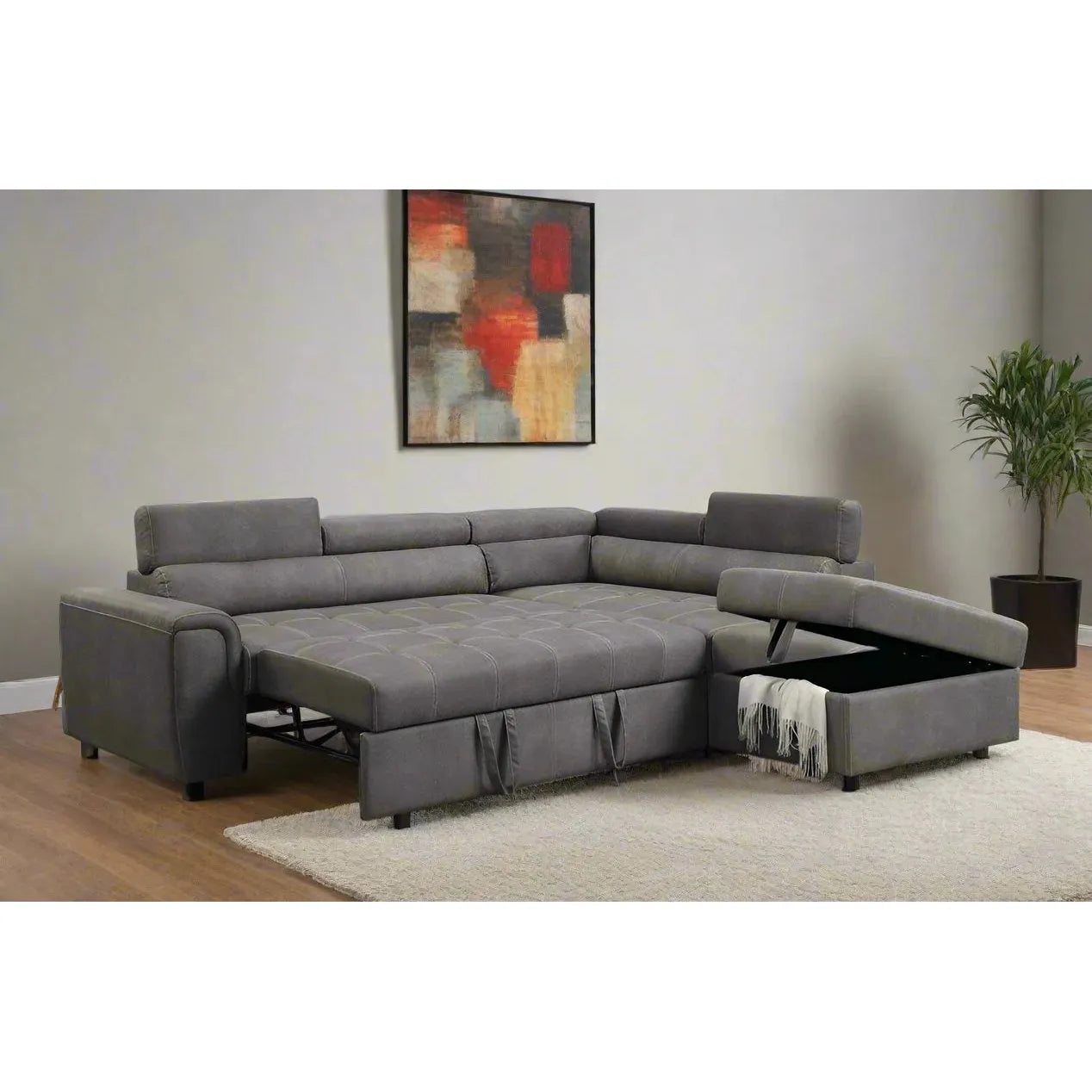 This Sectional sleeper sofa comes with Contrast Stitching and Adjustable headrests, which provide better support. There is also an ottoman with storage.
