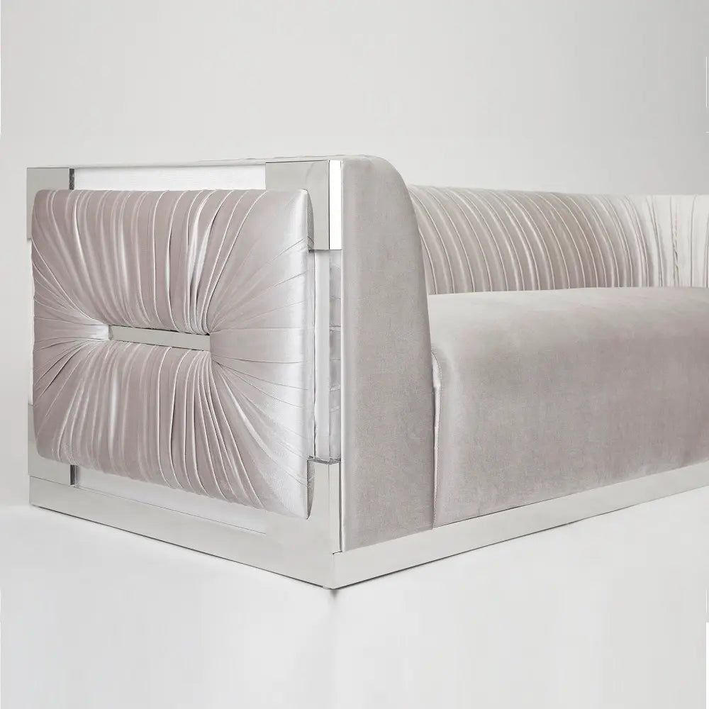 Modern Paloma Grey Velvet Sofa – Velvet Seating with Acrylic Frame