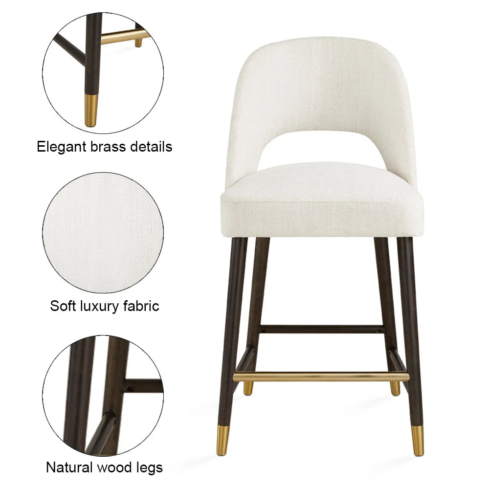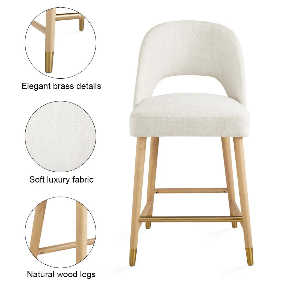 Abigail Ivory Linen Counter Chair with Gold Accents