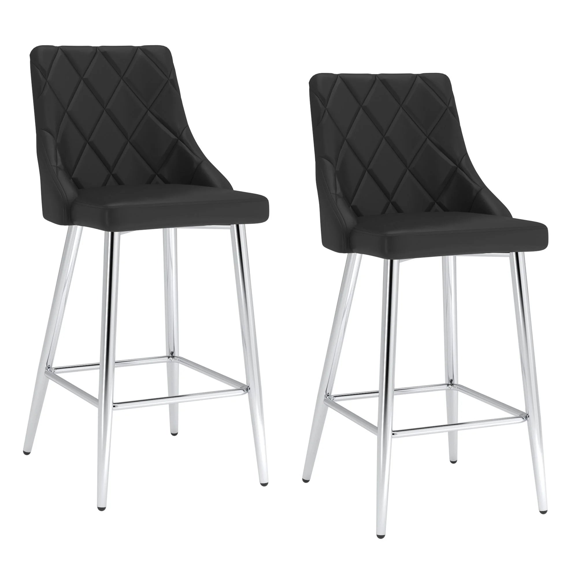 Devo Black Faux Leather Counter Stools With Chrome Legs – Set of 2
