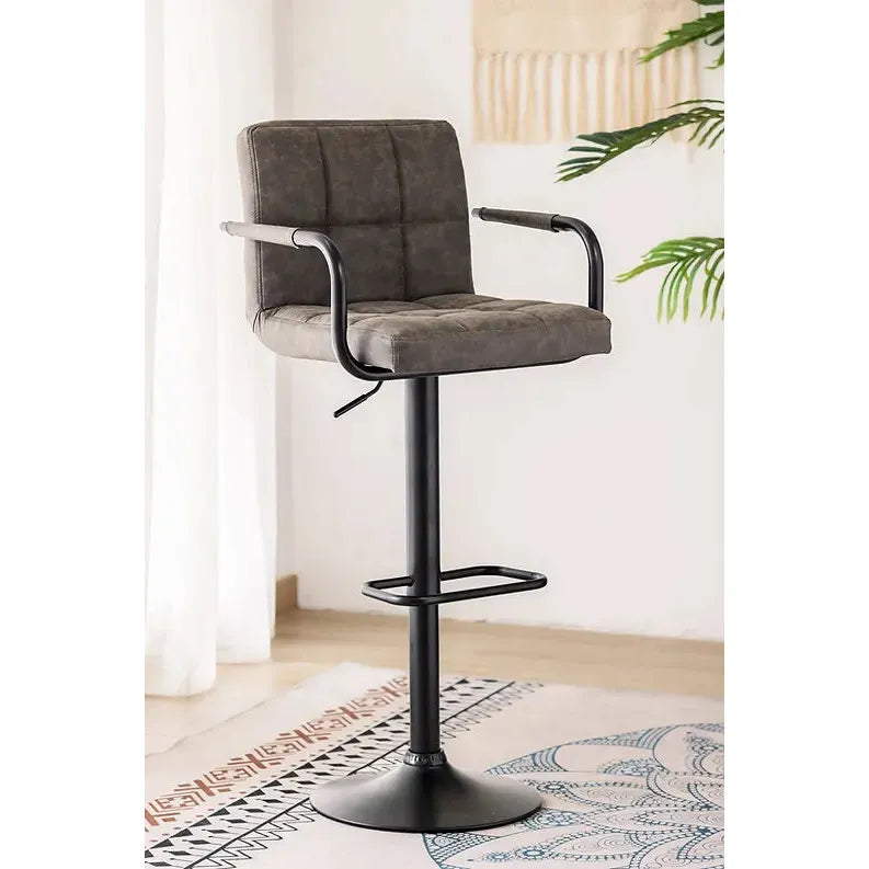 The smooth 360° swivel lets you turn with ease, while the gas-lift height adjustment ensures a perfect fit for any counter or bar. The curved ergonomic backrest supports your posture, and the steel armrests add both style and comfort.