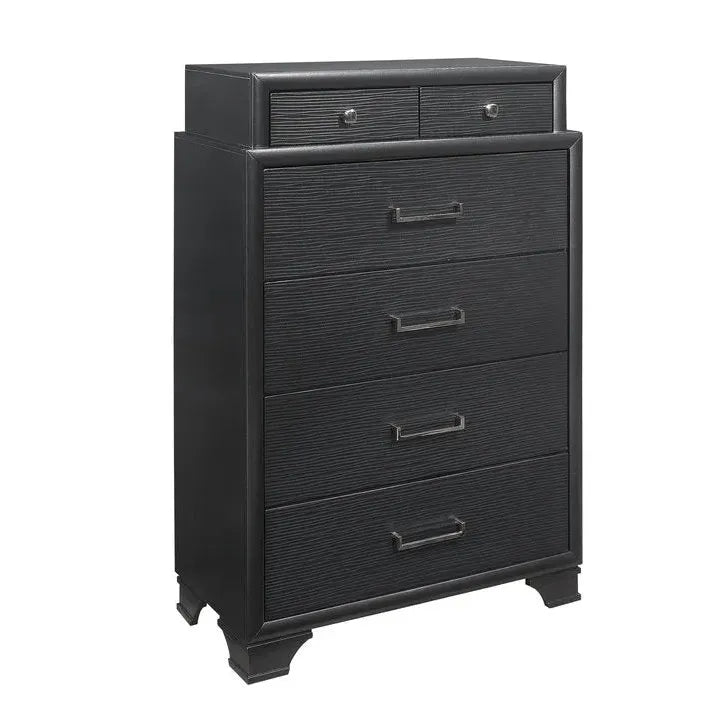 Available in double, queen, or king, this set includes a bed, dresser, chest, mirror, and nightstand—everything you need to create a space that’s not just beautiful, but truly functional.