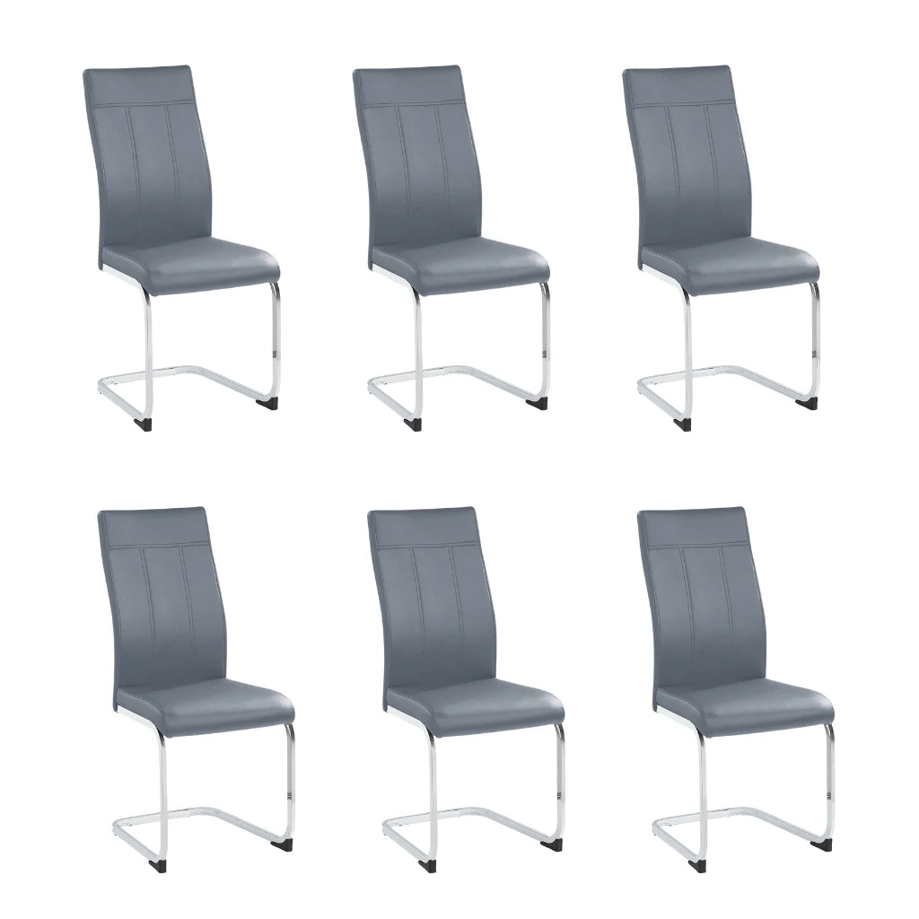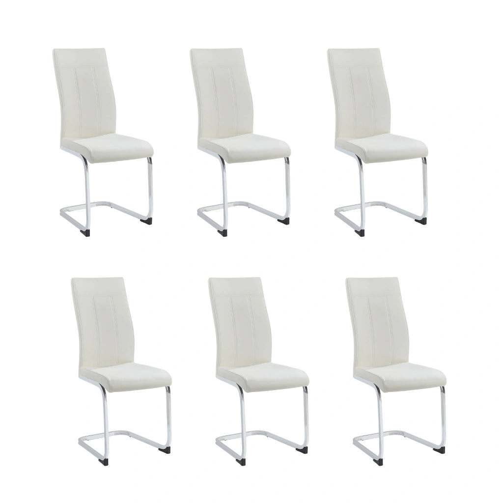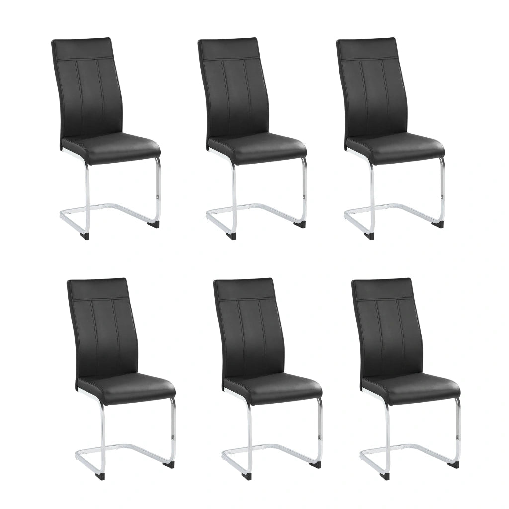 Set of 6 PU Dining Chairs – Transitional Style with Chrome Base