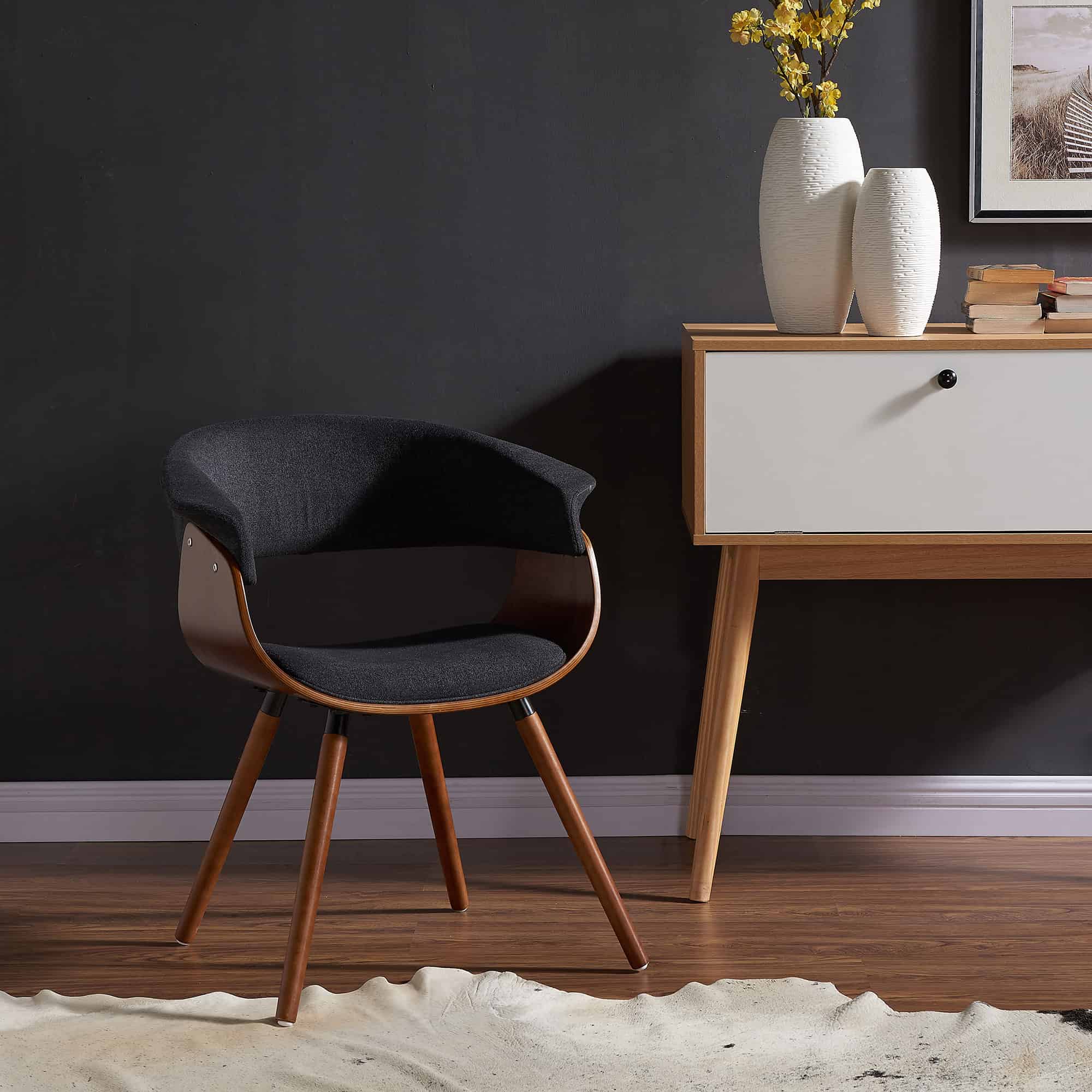 The Holt Mid-Century Modern Accent and Dining Chair is Designed with a curved bentwood frame and solid rubber wood legs. The structure of this chair will be quick to catch even the most critical eye with its appealing flair. The mid-century modern-style chair is perfectly suited to pair with any dining table or in a living room, hallway, or bedroom.