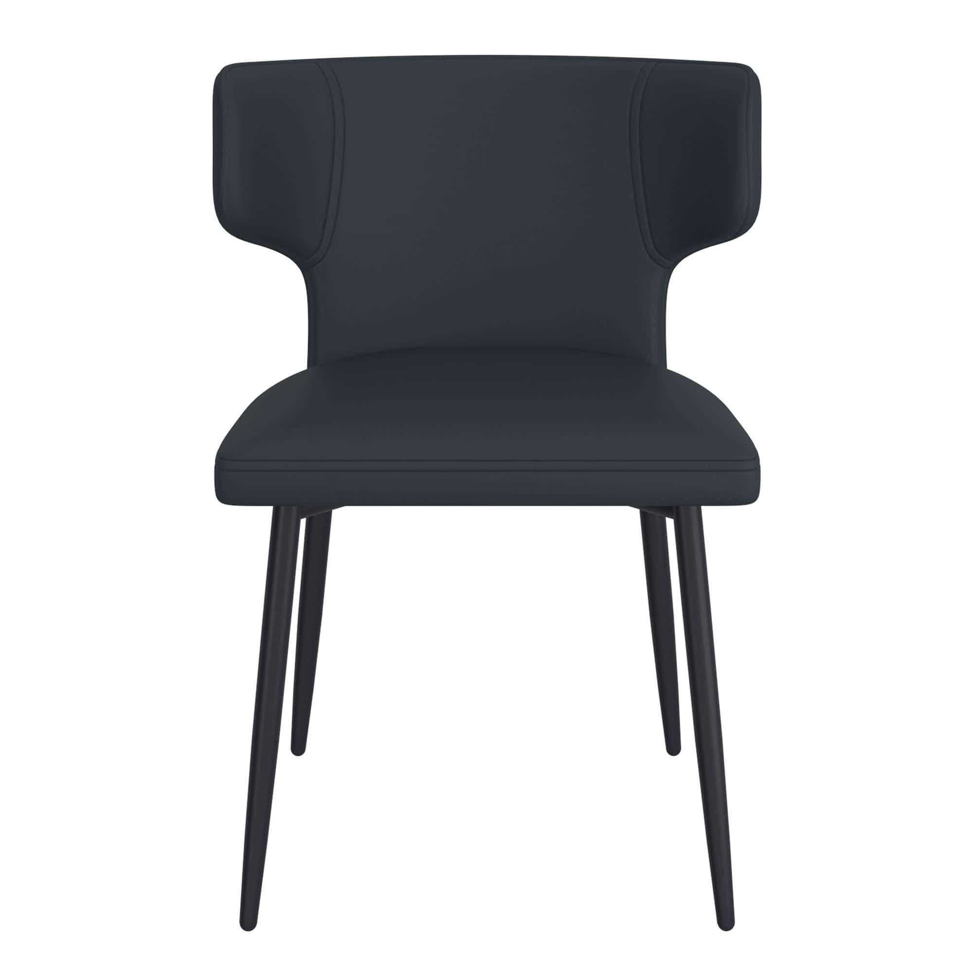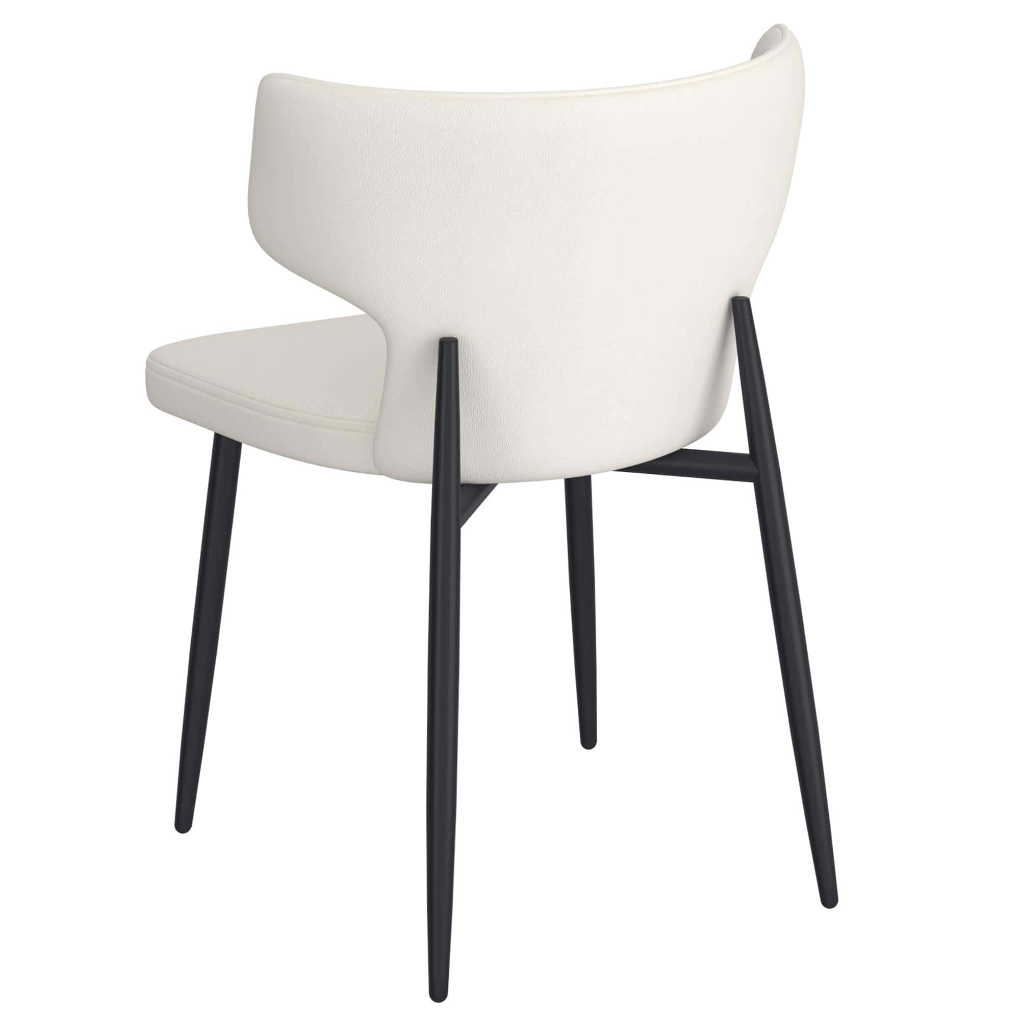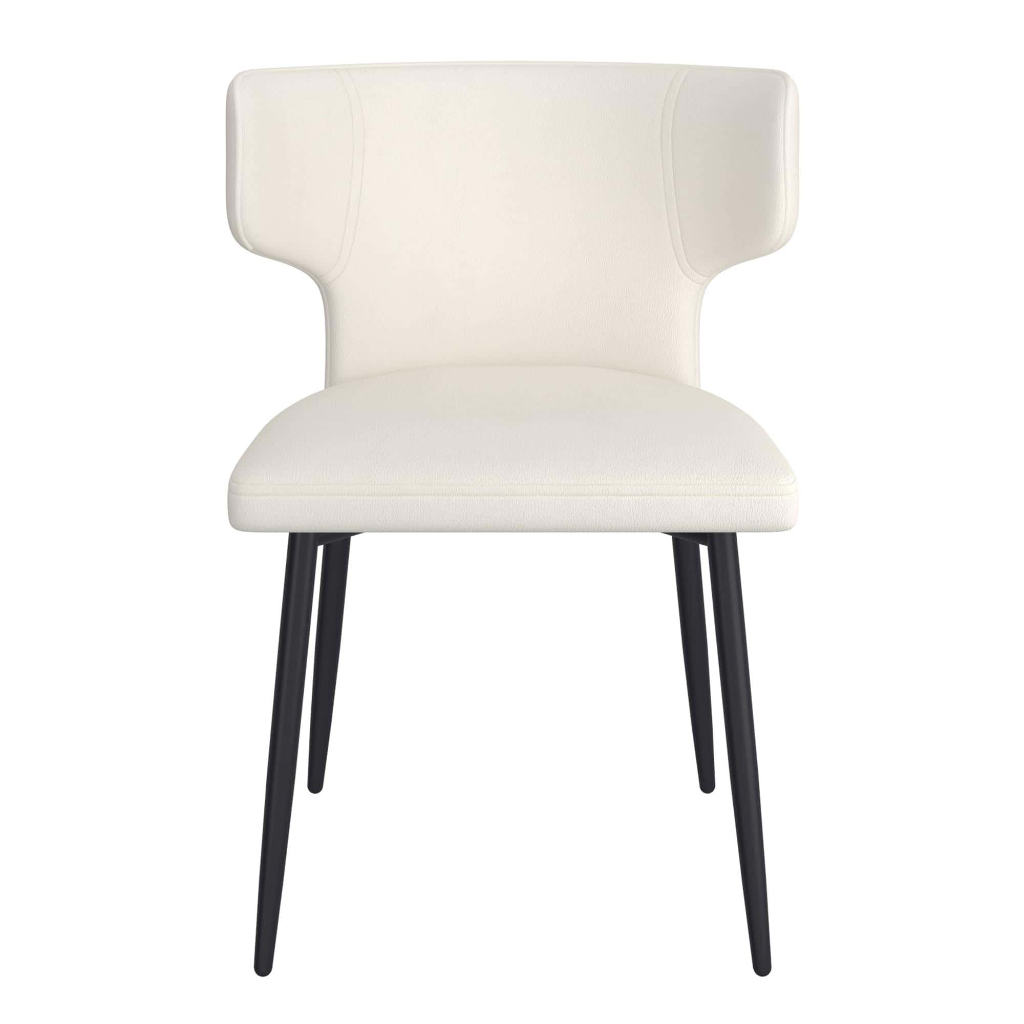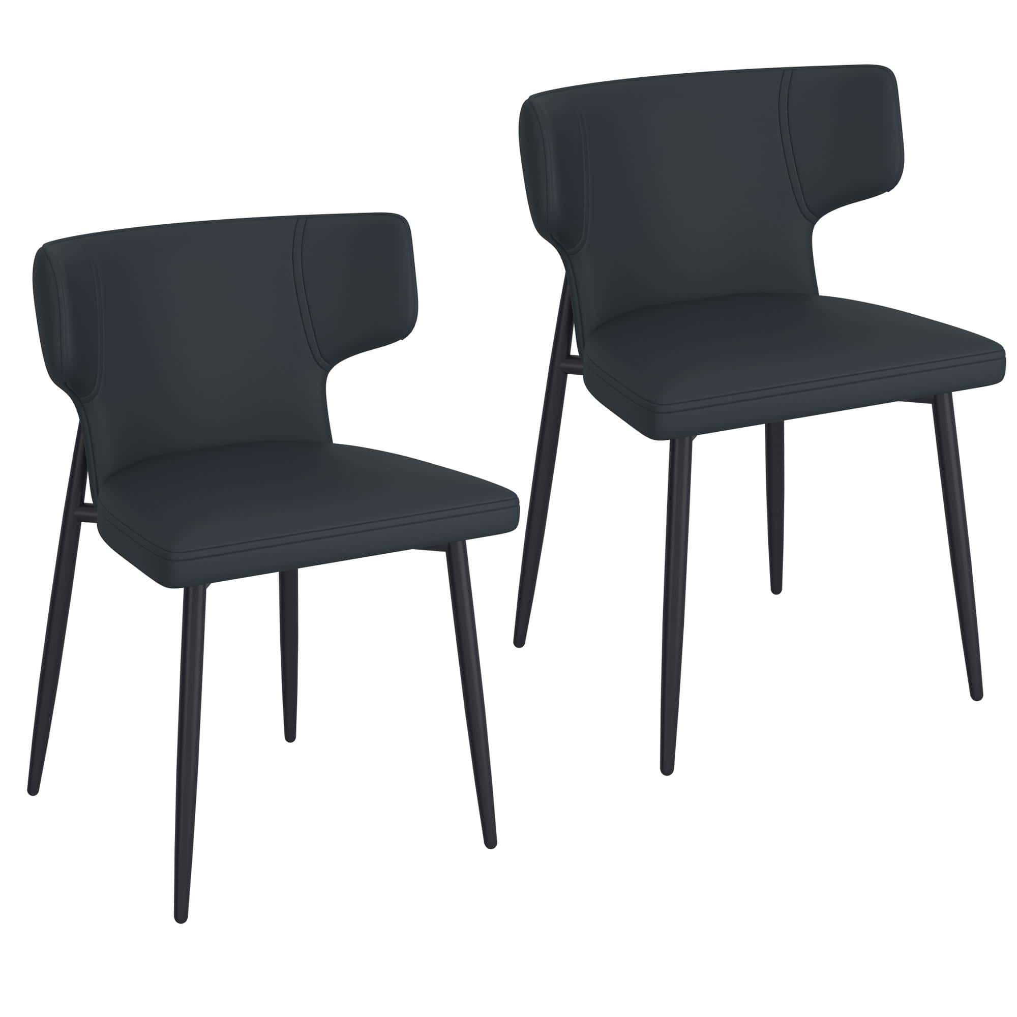 Add a designer touch to your dining room with these beautiful, curved back and cushioned seat, comfortable dining chairs. The modern wingback design gives your room a high-quality, stylish look.  Faux leather upholstery is easy to wipe clean. The black metal legs are fit for any space. This chair is Perfect for formal dining spaces, or to kick up your everyday dining experience and pair it with your casual kitchen table.