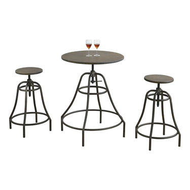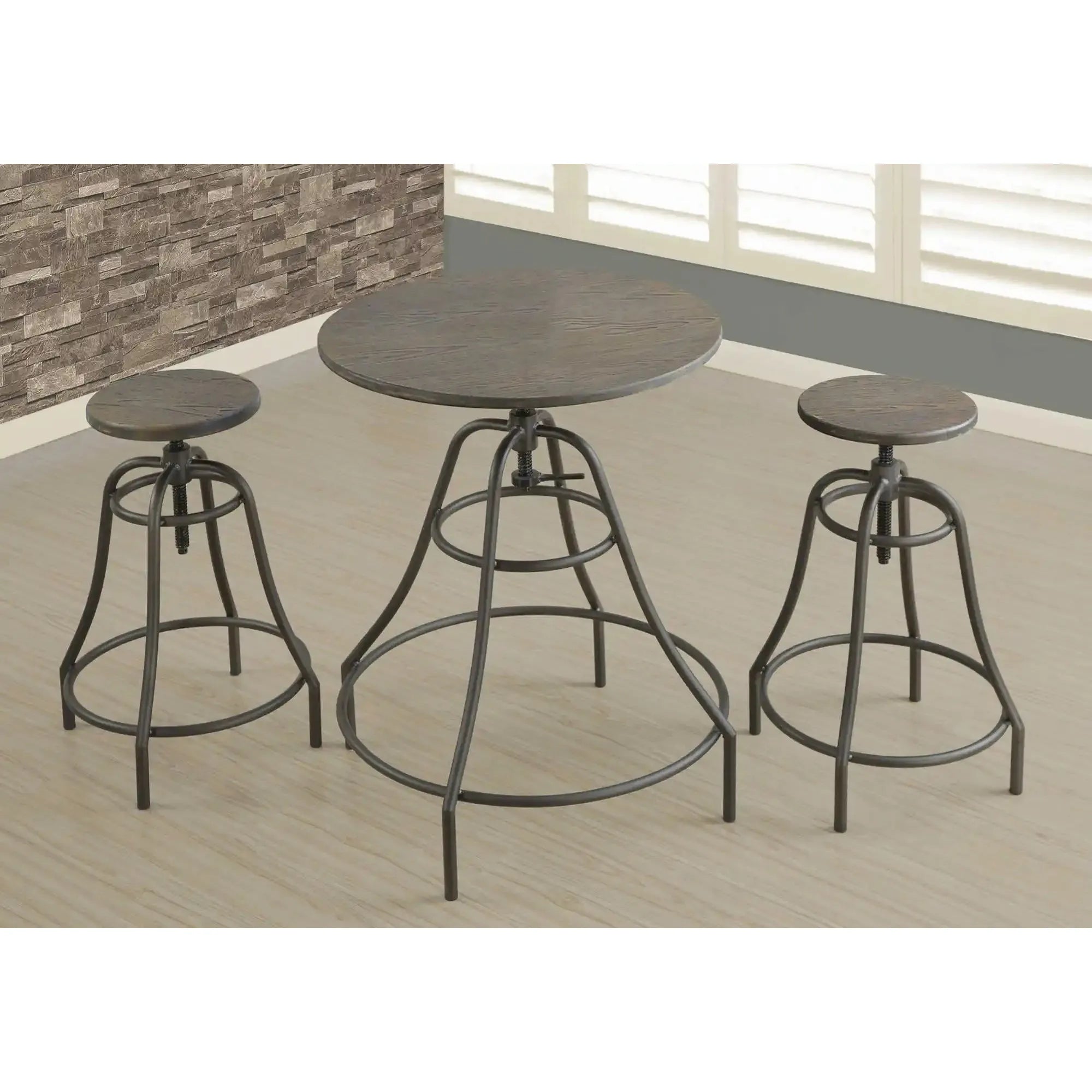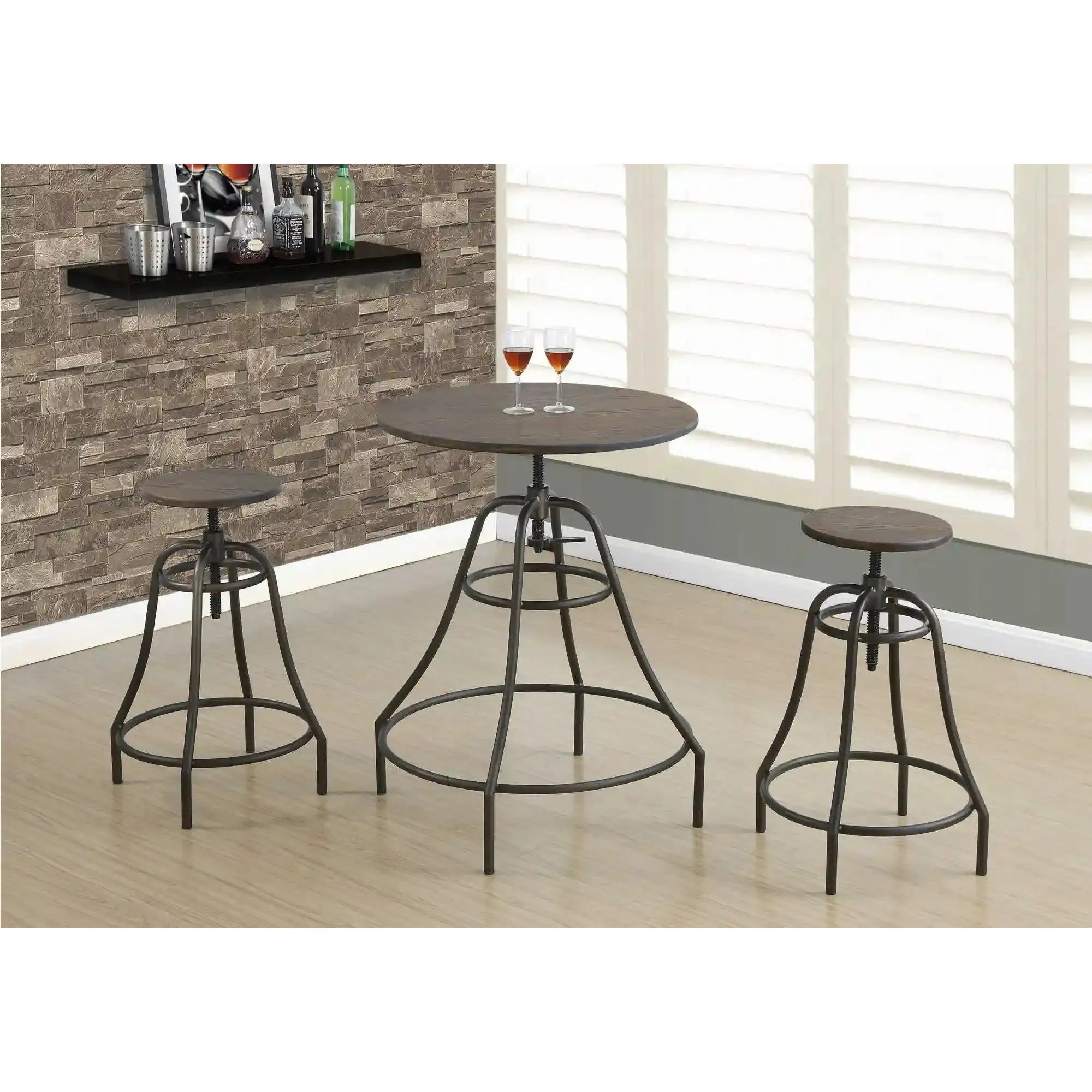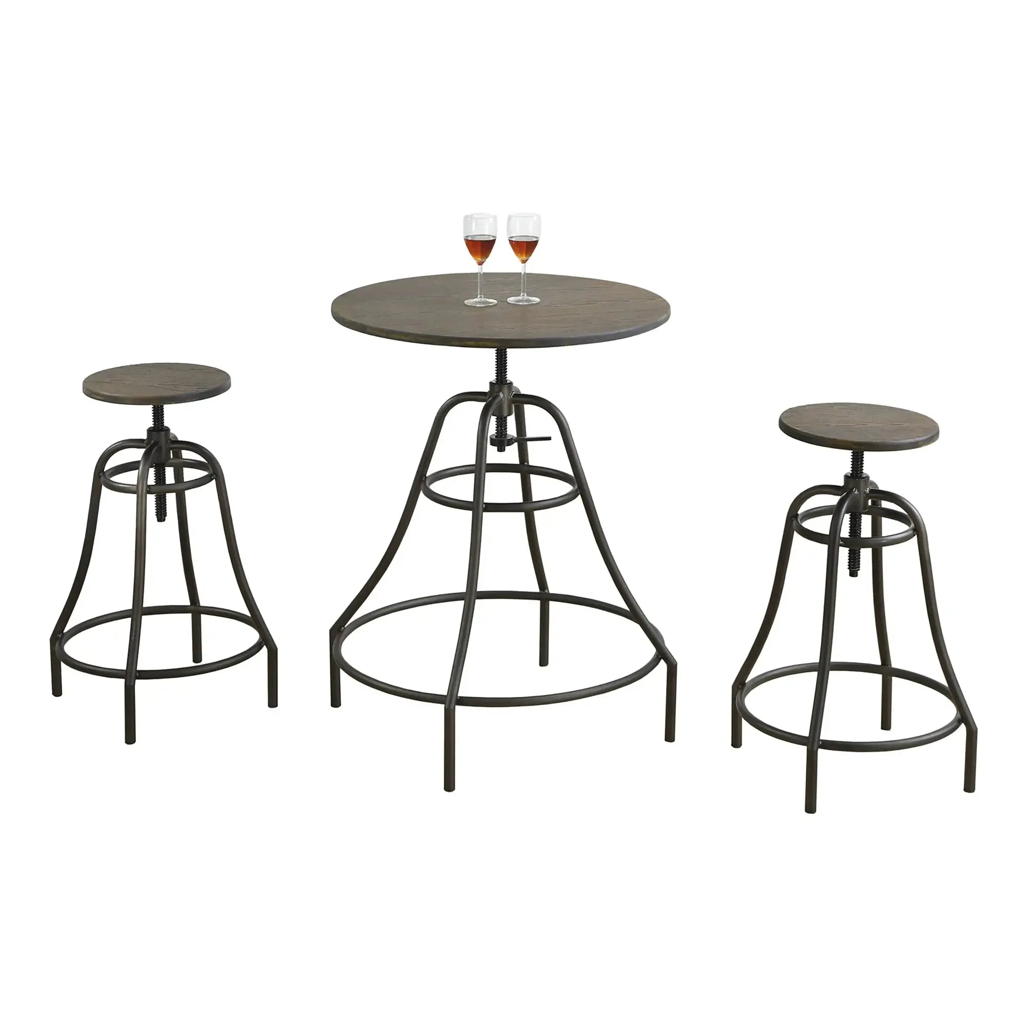 Add a designer touch and smart functionality to your kitchen or dining area with this 3-piece adjustable-height dining set. This bistro dining set for 2 people features a rustic distressed brown finish and a durable bronze metal frame.