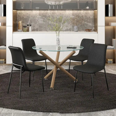 Carmilla/Brixx 5pc Glass Dining Table Set with Hexagon-Stitch Chairs
