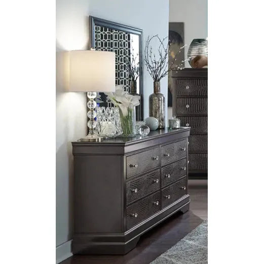 6-Drawer Modern Crocodile Dresser With Mirror