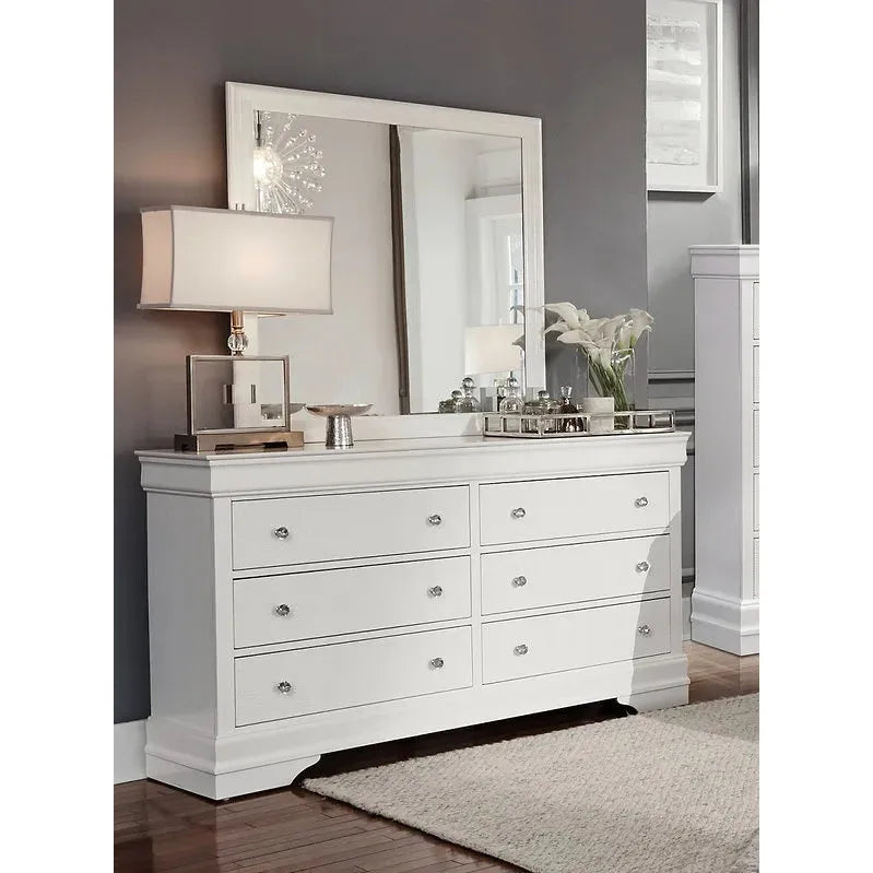 White 6-drawer dresser with mirror