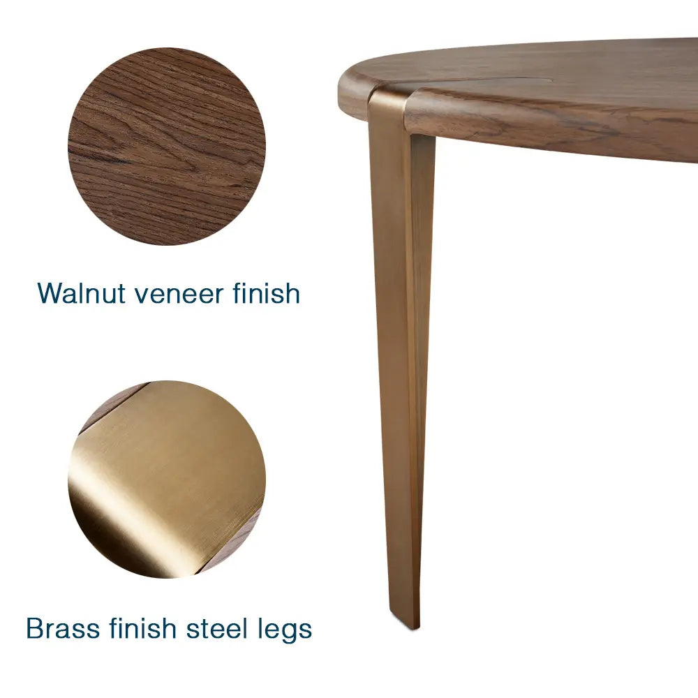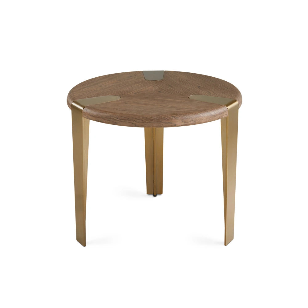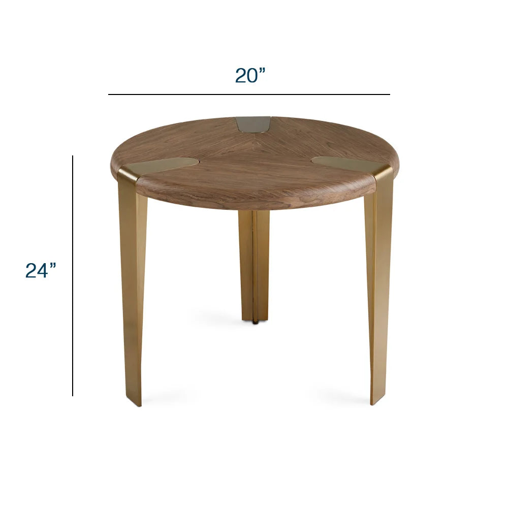 Darlene Round Wood End Table – Walnut Veneer Top & Brass-Finish Base