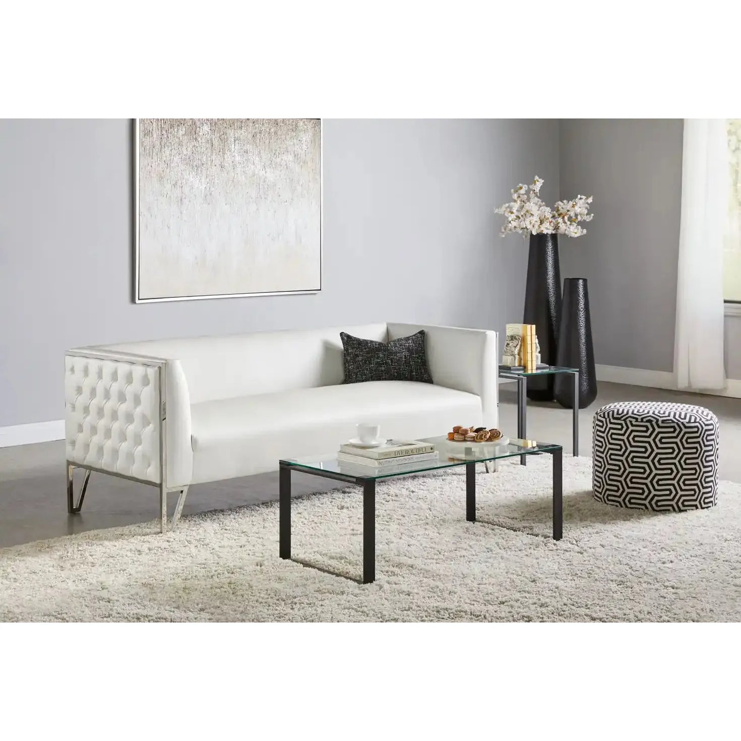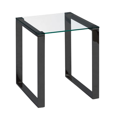 Introducing the Daniel Black Metal End Table - the bold look of strong forms and strong materials is tempered by the soft metal finish. The sleek design of this tempered glass top and black powder-coated metal frame offers a touch of chic, industrial attitude at its best.