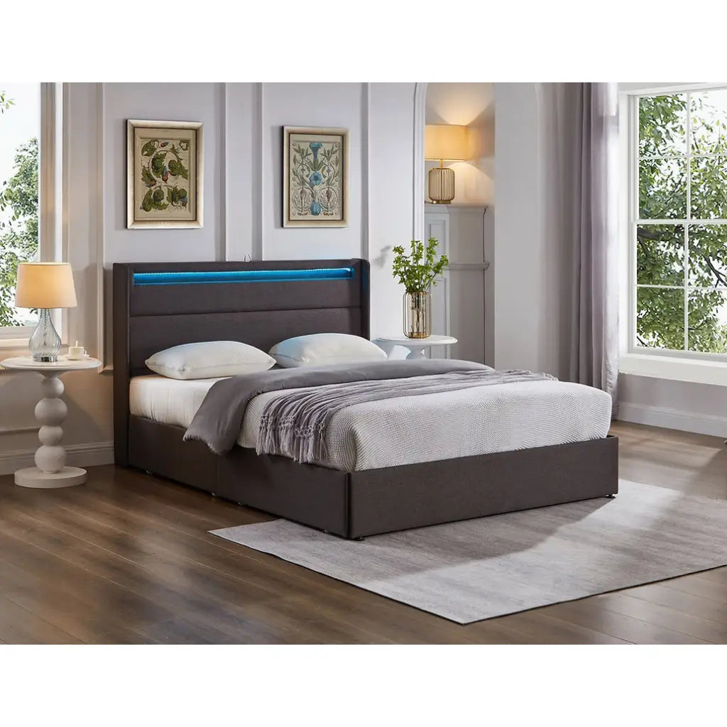 Double Bed with Storage Drawers, LED Lights & Charging Station