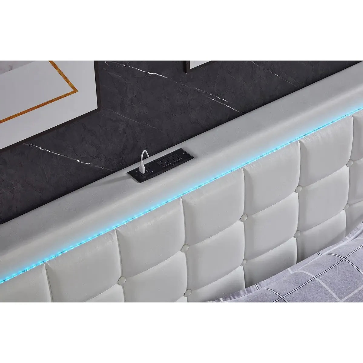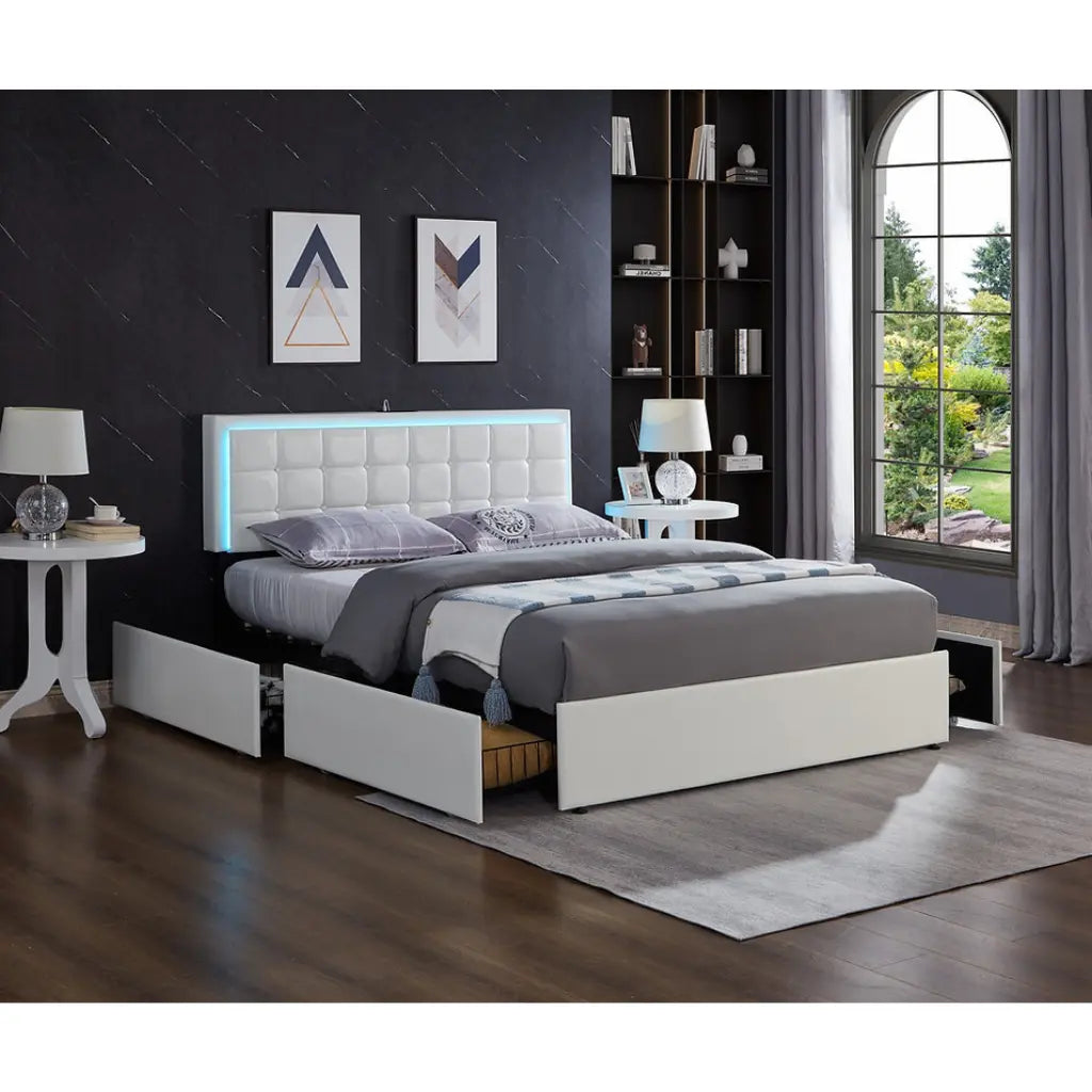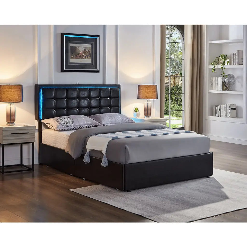 Double Bed with Storage Drawers, LED Lights & Charging Station