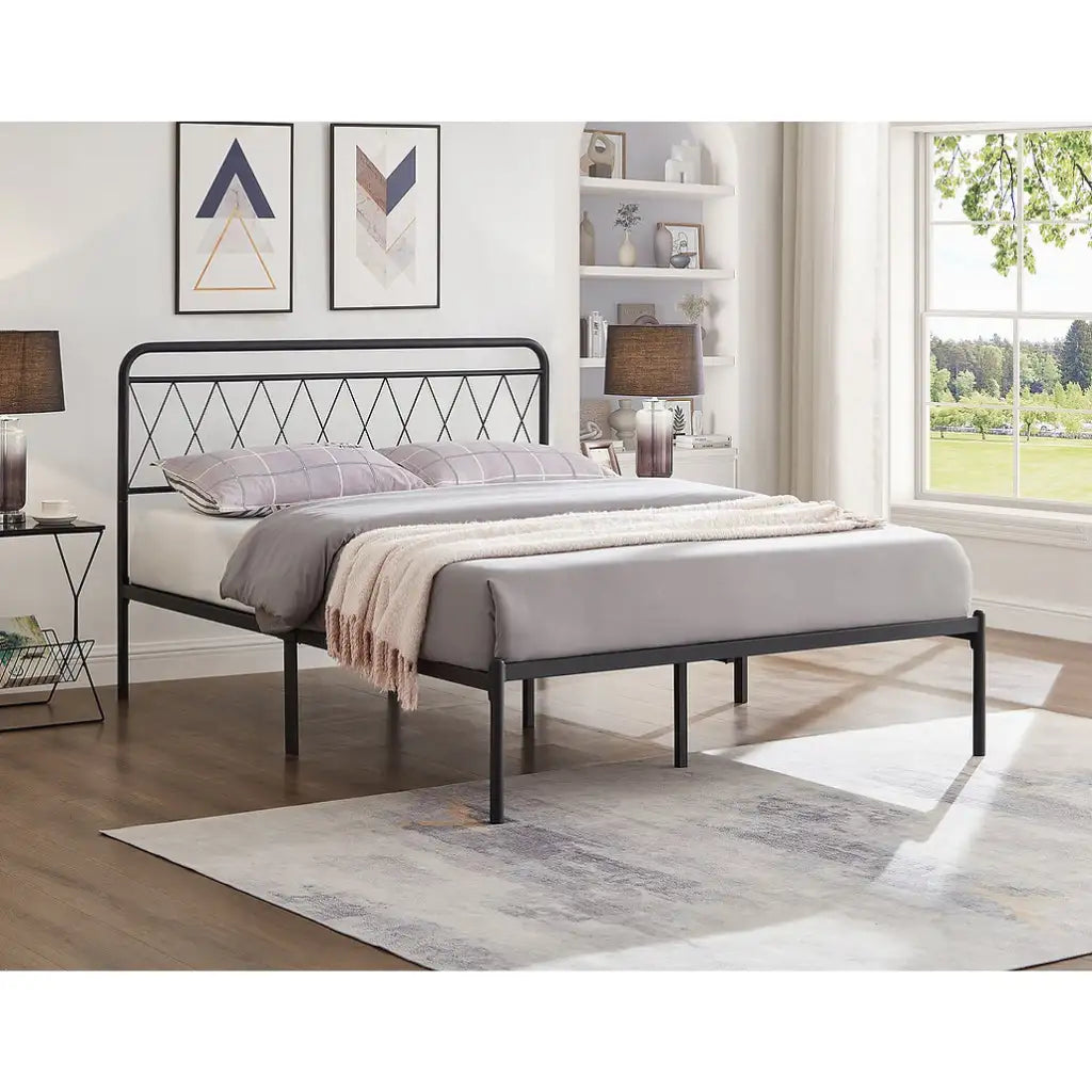 Double Platform Bed with Mattress Support – Black Steel Frame