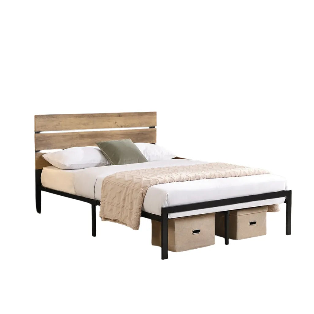 Rustic Double Platform Bed with Wood Grain Panels & Metal Frame