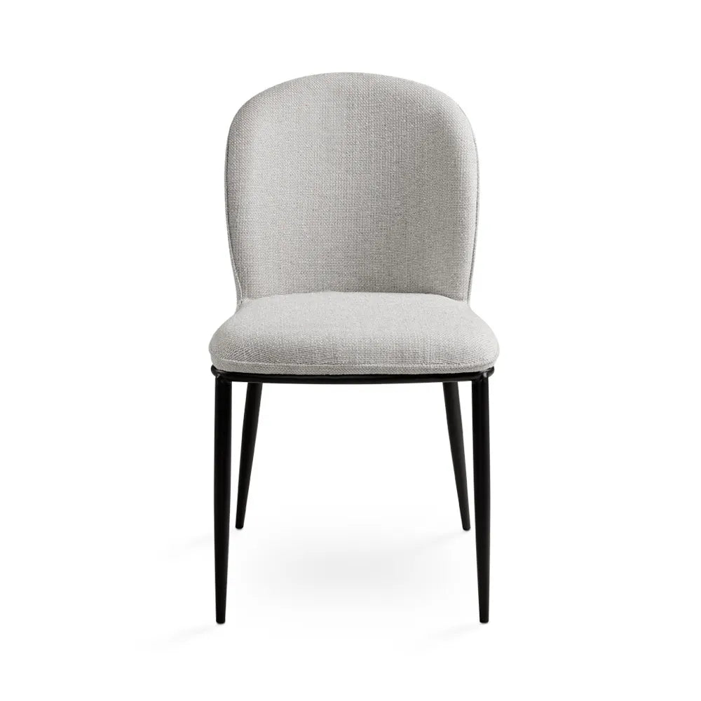 Style meets simplicity with the Angie Grey Linen Dining Chair - a classic piece fit for a modern lifestyle. Upholstered in sumptuous soft grey linen with a cozy textured feel. It gives your dining area a tactile edge, and the sleekness of the black metal legs provides added durability.