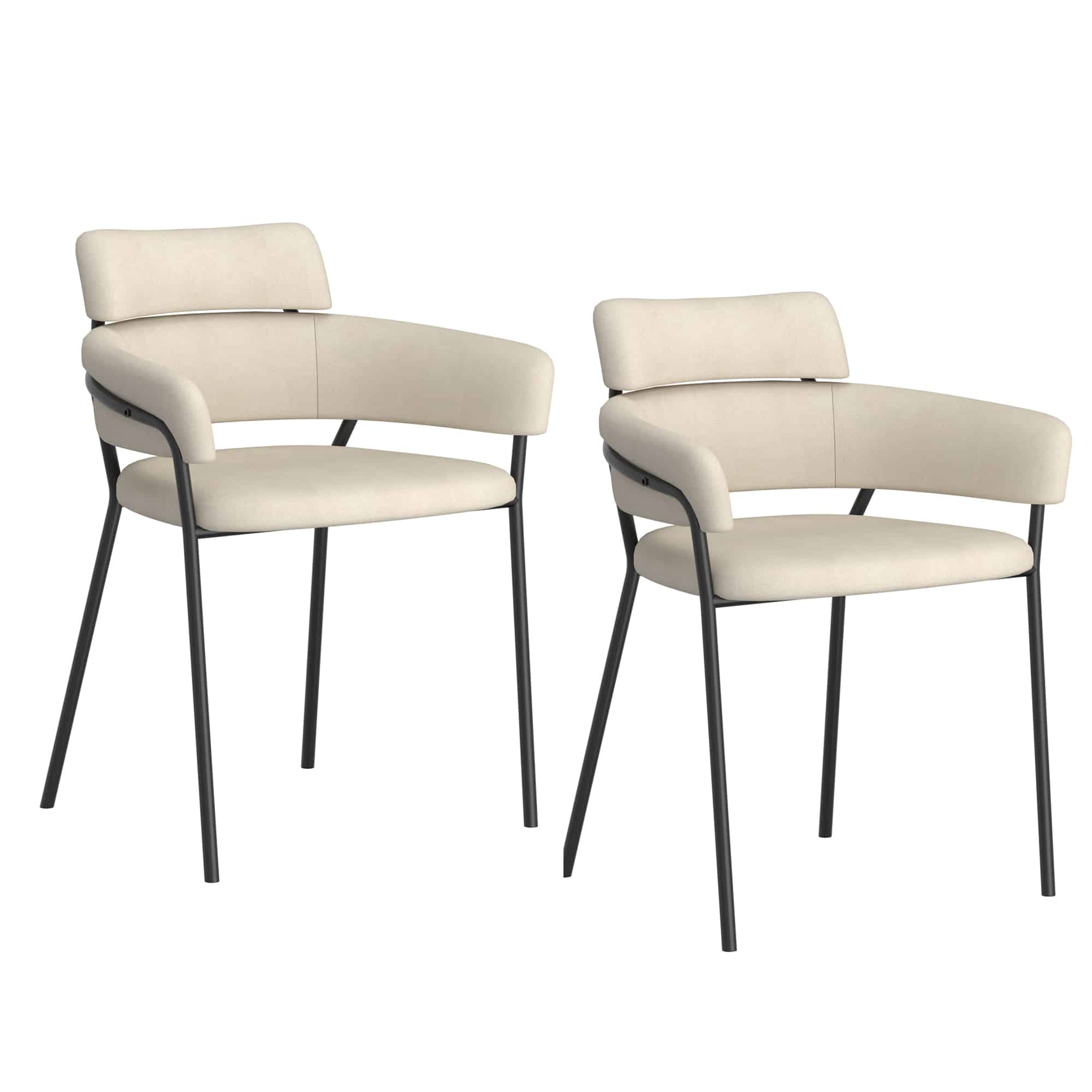 Axel Modern Side Chair in Beige Fabric and Black Metal - Set of 2