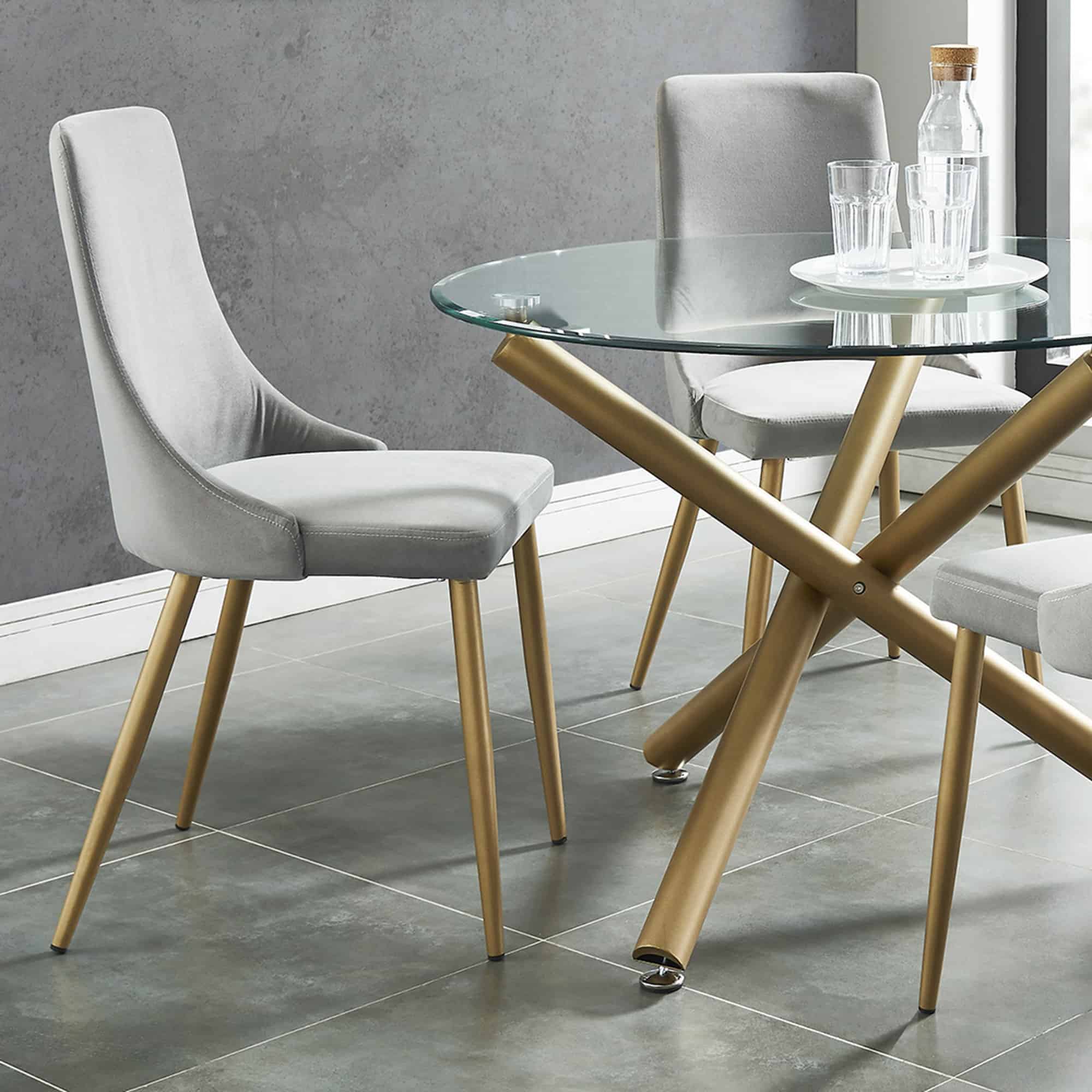 Carmilla Velvet Dining Chairs – with Gold Metal Legs - Set of 2