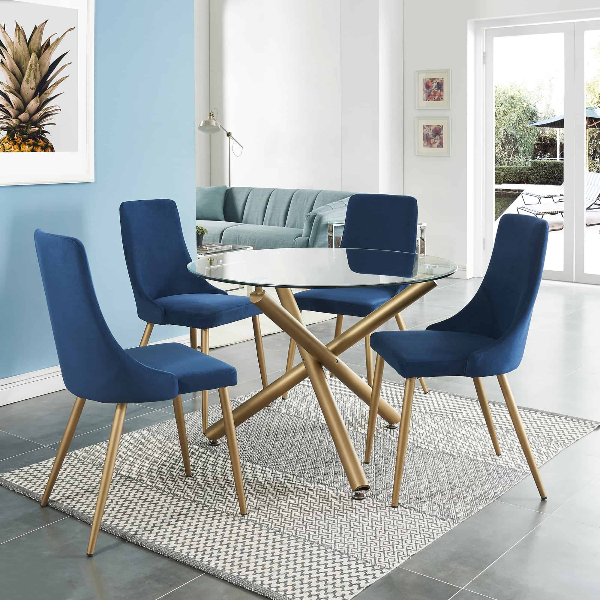 If you want to decorate your guest room with a pop of color and a comfortable respite or if you want to bring elegance to the dining room around the table, this is the perfect chair for you. The soft cushions are made with elegant fabrics that are as beautiful and inviting as they are conditioned to withstand regular use. These chairs are finished in a rich-looking brushed gold.