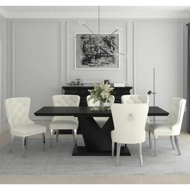 Maison Eclipse/Hollis 7pc Modern Dining Table Set with Ivory Velvet Chairs