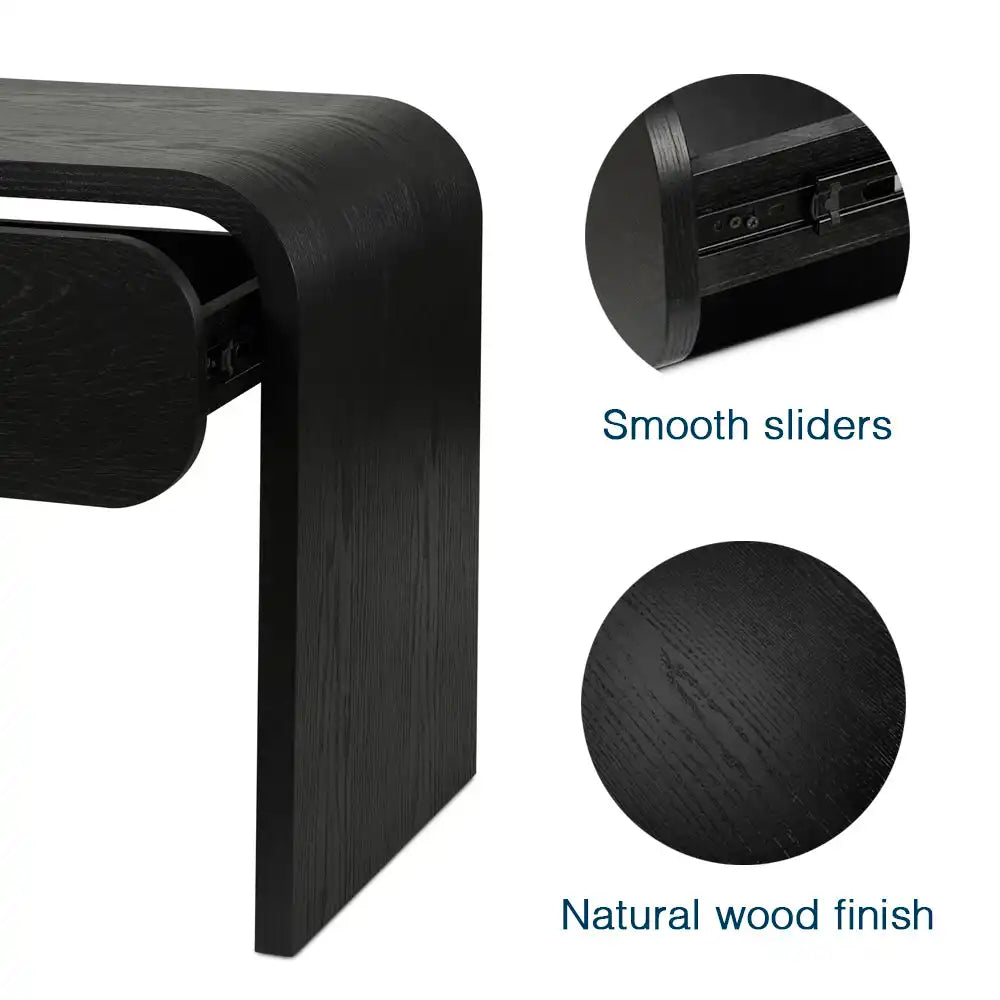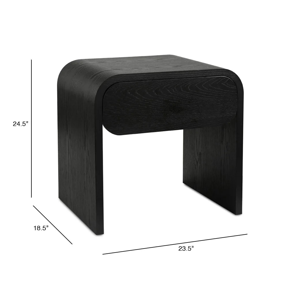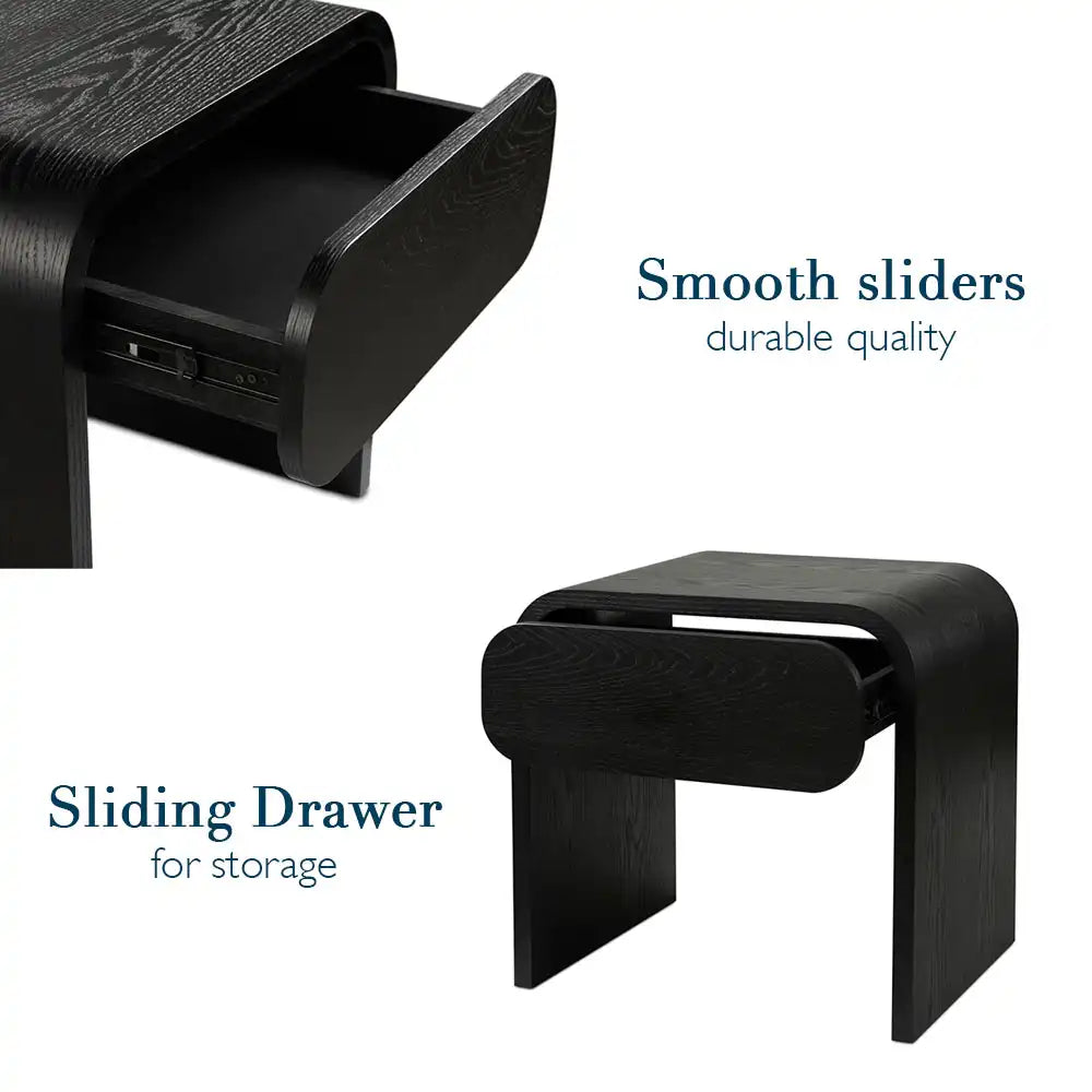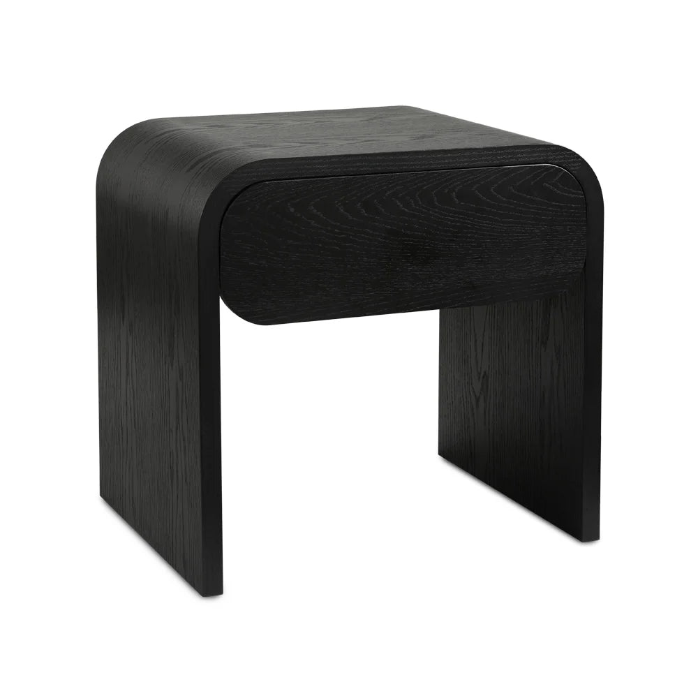 Elvis Black Nightstand With Drawer, U‑Shaped Design