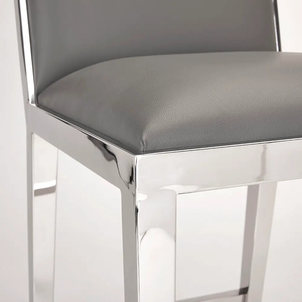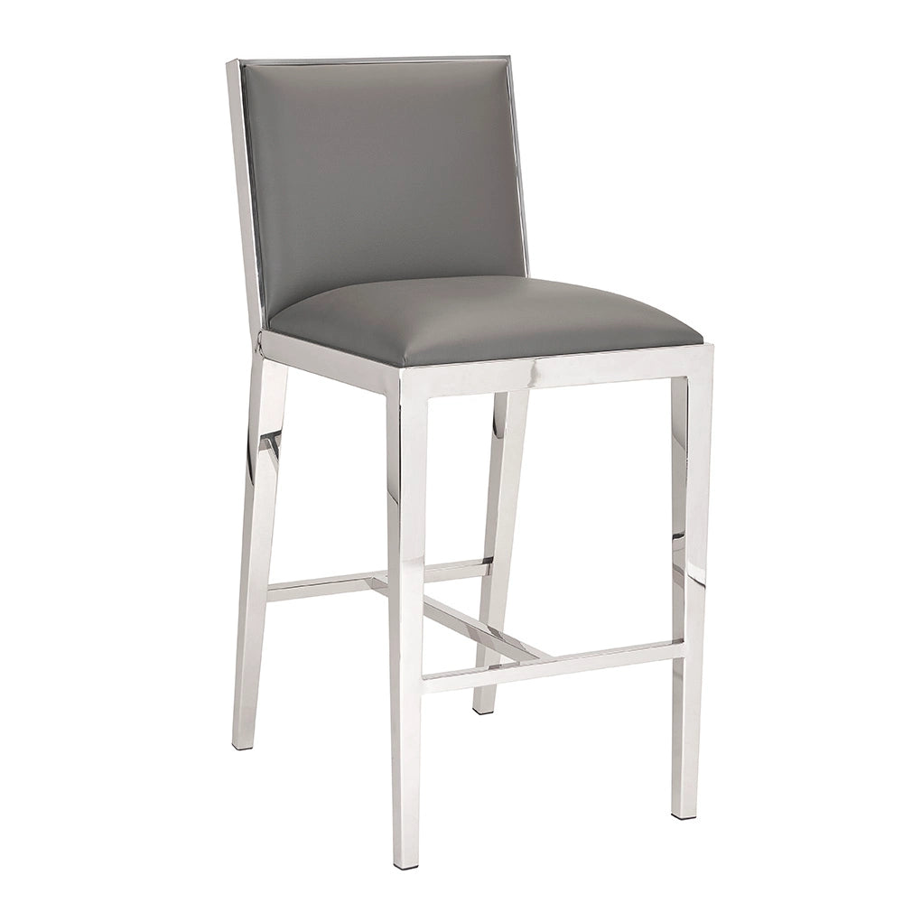 Maison Emario Leatherette Counter Stool in Grey with Polished Steel Legs